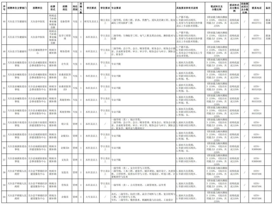 本公告涉及招聘单位岗位类别、学历学位、专业等报考条件设置以及岗位聘用等事项由招聘单位(或主管部门)负责解释。天台县人力资源和社会保障局负责招聘工作的指导、管理和监督。