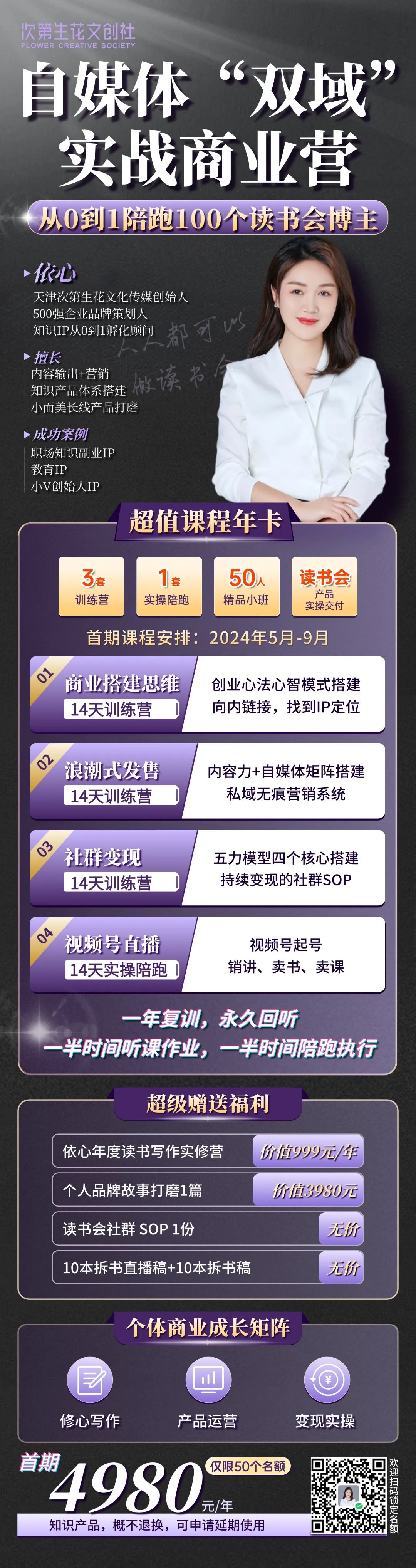 ▲ 点击“次第生花”“依心读书”关注公众号 直播预约👆 活久见:一个公司的公关部门,自己给自己制造公关事件。1、“全部门都要求做个人IP”,这个坑企业别踩说话场景不对,这段话在办公室里讲,员工是敢怒不敢言的,即便是几分怒,也受制于每一个月工资,现在的市场环境不景气。但在自媒体平台,讲“狼性”就不对,现在的中年人是十年前被“狼性”坑惨的一代。如果这个发生在百度其他员工身上,也无可厚非,这位可是公关副总裁!如果自己公司的价值观和主流价值观不匹配,真的劝默默做事就好了别挤自媒体这条道。入局注定翻车!据说百度的公关部门被要求全员做IP,不做就会扣绩效。个人IP的内容没有审核标准,大众情绪更难把控,全员做IP就是一个坑。 本质上不是她的话语体系出了问题,还是阶级对立的问题。但她言论里有几点确实不当,比如说:我一篇小作文让你在大厂找不到工作呀,还有在办公室抽小人。但问题不是出在这,这一年互联网有很多冲突,基本上都是如出一辙阶级对立的矛盾。我是山东人,那趟车我从上学到上班坐了十几年。山东本身不穷,但贫富差距大。坐辆车基本上是山东鲁西南最底层的打工人。大家知道山东的父母基本上都是不舍得吃不舍得穿,什么都留给孩子,一点体面都不给自己的那种。所以,给列车小哥一个刻板的印象,就是山东人穷。有也很好理解,大脑里形成潜意识,一着急脱口而出。但这件事之所以发酵,还是因为身份不同。如果是一个素人和另外一素人吵架,怎么吵矛盾都不会升级。但列车员和农民工吵架,列车员说什么都是错的;百度高管怼员工。百度高管怎么怼就是错的;网红主播怼消费者,网红主播怼什么都是错的;超级头部大v怼小卡拉米。头部大v怼什么错的。问题根本不是话语本身是对是错,本质上阶级对立的矛盾,在一件细小事情上的升级、爆发。现在自媒体无论是个体还是企业都很难。个体受平台限制,动不动封号,禁言,关小黑屋;平台政策几乎每周都变。这些不确定性让一些有创作热情的个体,也渐渐没有热情了。企业受大众舆论控制,稍微有阶级对立的嫌疑,立马来一个龙卷风的危机事件,根本招架不住,比如农夫山泉事件。私域的粉丝是可以养育的,言论是可控的,就像很多明星都有自己的粉丝代表一样。可以控制舆论风向、造势、卖货,都可以在私域里操作。现在,大企业和小企业都在忙着圈流量,很少有企业真正把自己的原有的粉丝和用户群体,圈起来深度培育,和他们共同成长,消除阶级对立的矛盾。今年付费了几个头部知识大V,2000多的课程,都有私域的服务,比如说罗老师在跨年演讲的时候卖的那个产品。刚开始我还挺惊喜,这个产品社群增值服务,还细分了频道。但没想到两个月就成了广告群。根本没人管理!还有其他的社群,只有社群维护,没有社群运营。公域太浮躁,私域才能沉淀用户、内容,才是消除企业和消费者,阶级壁垒,化敌为友的渡船;未来想要做副业的个体和有粉丝积累,有产品的企业,都可以考虑把精力和时间分给私域一点。奉劝各位和曾经的我一样的中层打工人。不要被职场精英优越感包裹太久了,对外界对自己的认知都脱敏了。走舒适区,多看书,提升认知,也许能接住你的后半生的不是平台优势,是你自己本身的优势。闭关写课100天,打磨了一套适合自媒体小白入局的套课训练营;从0到1打通,小红书、视频号、直播、公众号内容输出卡点。辅助设计社群运营SOP、朋友圈发圈、无痕营销内容方案、直播讲书;以可变现的读书会交付为结课作业,四个月带你实操落地读书会。打通写作-变现-成交-社群运营系统卡点,实战自媒体!!!精品小班授课:50人封班;(享受市场私董权益,全网唯一系统打通自媒体)