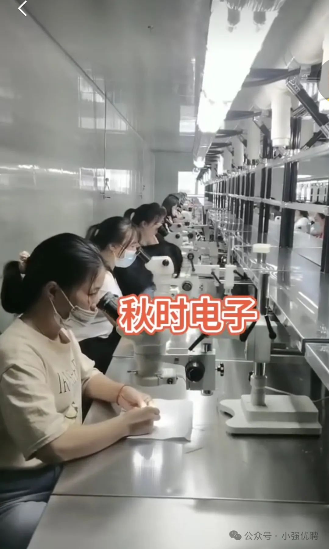 春季招聘啦 ![]() 热招岗位 深圳东莞秋时电子/男女不限 一、职位类别: 显微镜操作技术工,综合工资在7000-9000元/月。 二、基本要求: 1.年龄,女18-42周岁,男18~30岁。 2.身体健康,手脚灵活,无色盲,能书写26个英文字母; 3.能适应无尘车间作业(需要穿连帽防静电服蓝色大褂,可露脸;工作环境舒适,恒温车间,不会闷热); 4.能适应两班倒,一个月轮班一次;全年加班稳定,月总工时280以上。 5.能适应显微镜下作业,需要耐心和细心。 三、薪资水平: 1.底薪:2800元/月; 2.年资津贴:满6个月50元,满1年100元,满2年150元,以此类推,最高250元,合并计算加班费; 3.加班费:平时加班费,24.14元/小时,休息日加班费32.18元/小时,法定节假日加班费48.28元/小时; 4.其他福利:全勤120元,岗位奖金400-1800元,季度奖金0-330元,夜班补贴16元/天; 5.包住宿,水电费均摊,在台科花园,小区公寓式宿舍,环境优美;配备厨房,可供做饭。 6.加班十分稳定,没有淡旺季之分,周日休息,月总工时280以上。 7.餐补245元/月(随工资发放)+饭卡300元/月(园区有食堂,刷卡就餐,月底清零)。 8.突破奖:新员工入职(显微镜车间),连续服务满1个月,3个月、6个月后,将分别获得300元、600元、1100元的突破奖励,共计2000元。 面试地址:秋时电子科技东莞有限公司 联系:小强13049354928(微信同号) ![]() 加入 |