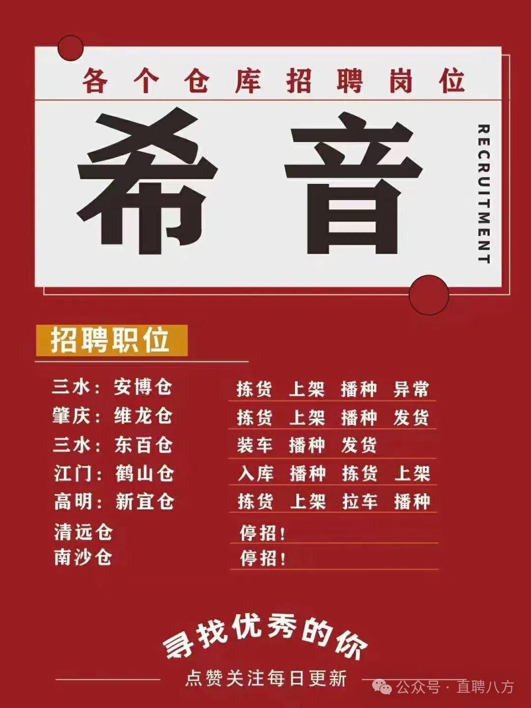 高明嘉民仓5月14日招聘岗位 ①播种员(男女不限) ②发货员(男女不限) ③异常处理员(男女不限,大专学量 @所有人 高明新宜仓5月14日招聘 1-上下架(男,多名) 2-拣货员(男女不限) 【以上岗位要求】:19-40岁 5月14日希音正式工安排: 1.佛山高明嘉民仓 2.江门鹤山维龙仓 3.江门鹤山嘉民仓 4.江门鹤山熙麦仓 5.广州南沙保税港仓 6.佛山高明新宜仓 7.肇庆大旺维龙仓 一、5.13大旺片区长期工面试安排:(需要预约,发名字和电话号码给冼小姐或者何生) 【招聘岗位信息会在当天上午9.30分前更新】 【当天面试结果会在晚上11点前发送短信通知】 面试要求: 1.面试要求:优先安排19-40岁,适应两班倒,能吃苦耐劳; 2.面试资料:携带身份证有效原件(手机保持充足电量); 3.入园要求:不能穿短裤、拖鞋,园区内不能抽烟; 4.薪资待遇:底薪1600+绩效/计件=综合薪资6000-9000,提供住宿,如外宿补贴220/月,餐补15元/人/天(当天满勤,次日发放),夜班补贴25元/晚,入职次月购买五险一金,有班车接送,入职前公司安排免费体检等。 |