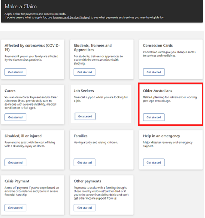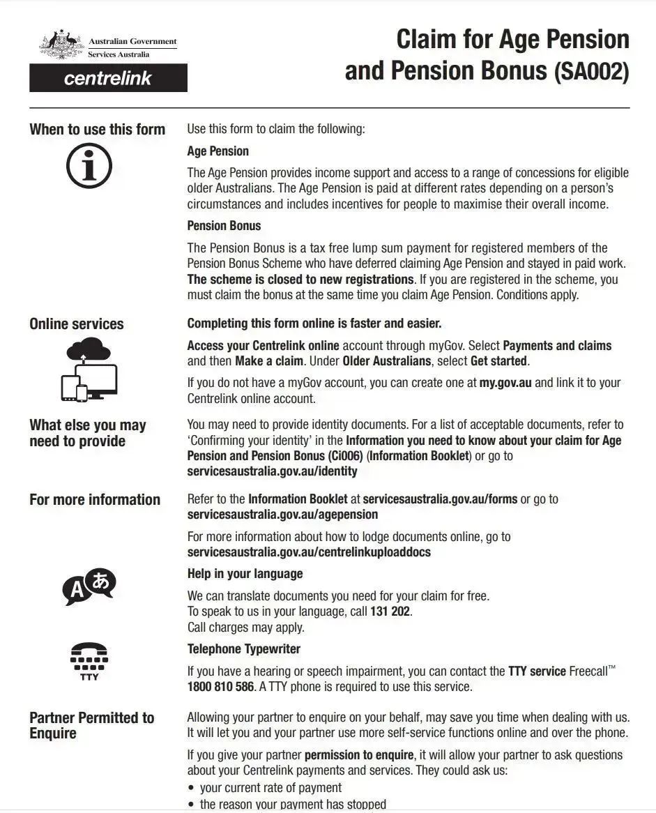 PART 1 ![]() 什么时候可以开始申请养老金? ![]() ![]() 可以在达到领取养老金年龄前 13 周内提交申请。 如果您已获得符合资格的付款,政府会在您达到养老金年龄之前 13 周写信给您,并将告诉您需要如何申请转为养老金(Age Pension)。 如果政府拒绝了您之前的申请,并且您的情况发生了变化,您可以重新申请。申请 Age Pension 的次数没有限制。 ![]() PART 2 ![]() 申请方式有哪些? ![]() ![]() 在线申请, 纸质表格申请, 服务中心申请。 ![]() PART 3 ![]() 申请资料 ![]() ![]() 必须提供的资料 身份证明 银行账户详细信息 税号 永久居民签证或澳洲公民证明 收入及资产证明 ![]() 除了以上资料,可能还需要提供居住信息、工资流水等,如下图: ![]() ![]() 详细资料清单可咨询出海行移民顾问VX:13522536525 ![]() PART 4 ![]() 澳洲养老金 线上申请教程 ![]() ![]() 可在澳洲政府官网申请: https://login.my.gov.au/las/mygov-login?execution=e1s1 1.首先登入myGov网站,点击LinkaService将myGov账户与Centrelink账户绑定。 ![]() 2.点击Centrelink ![]() 3.点击MENU ![]() 4.选择Paymentsand Claim,点击Claim,点击Make a Claim ![]() 5.选择 OlderAustralians类别,点击Getstarted ![]() 6.按要求填写(SA002)养老金申请表 ![]() 7.填写(SA369)收入和资产表 ![]() ![]() 【End】 如何申请澳洲父母移民?欢迎咨询出海行移民顾问~