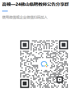 添加客服加入24佛山临聘教师招聘分享群 每日更新考情信息 | 备考课件 | 答疑解惑 报名方式: