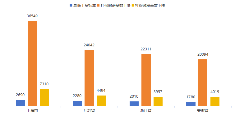 2023年,安徽省职工社保缴费基数下限为4019元每月,上限为20094元每月,同样排在长三角地区的“守门员”位置。