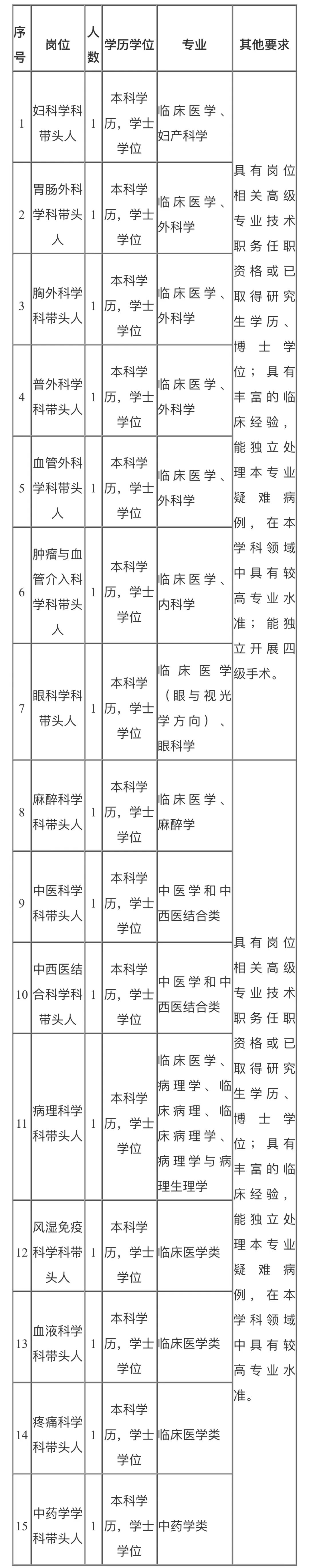 福建省老年医院(福建省立医院北院)招聘学科带头人15名