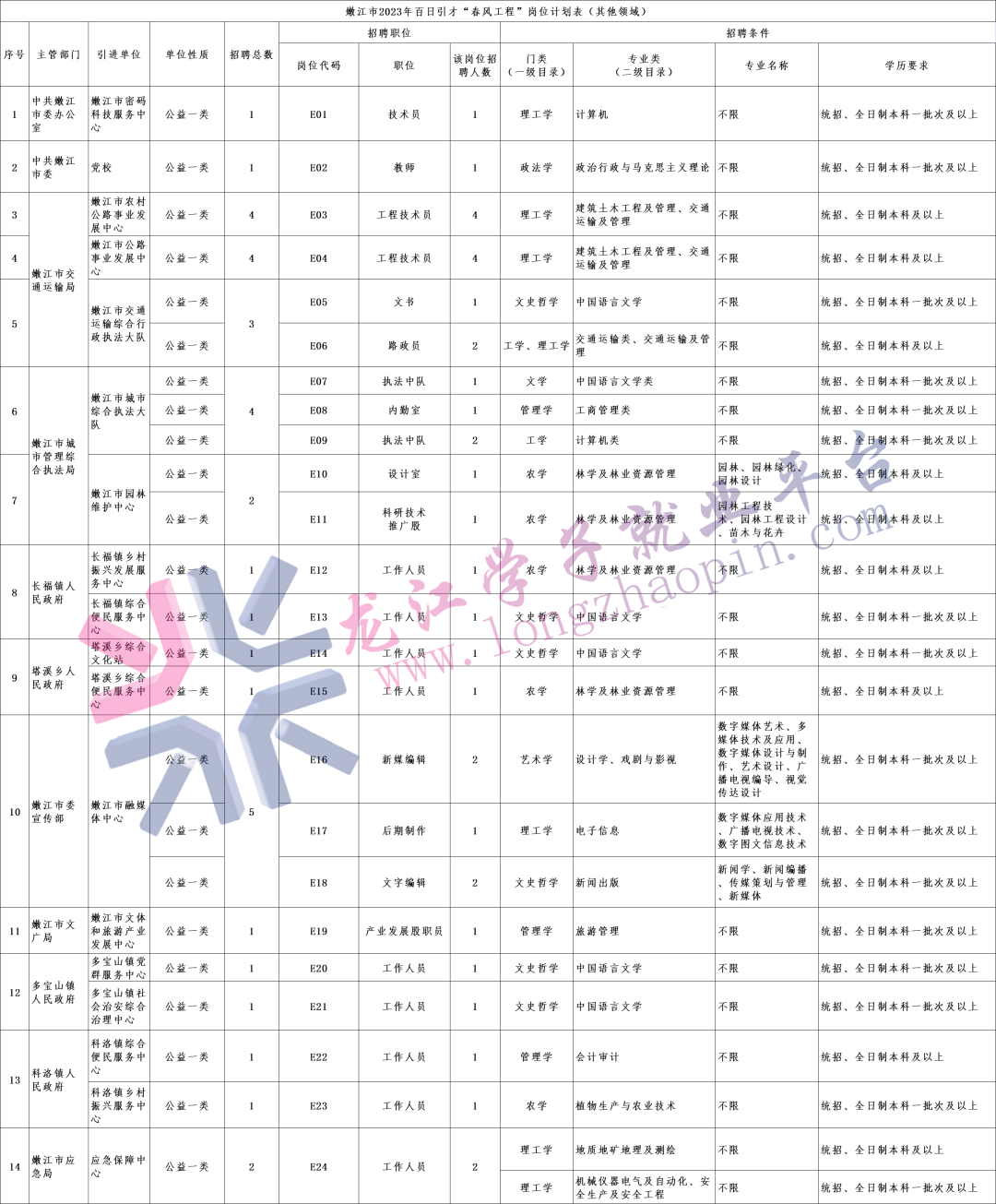 为加快推进人才强市战略,进一步优化人才队伍结构,为全市经济社会高质量发展提供人才保障,经嫩江市人才工作领导小组研究决定启动实施嫩江市2023年百日引才“春风工程”。现公告如下: