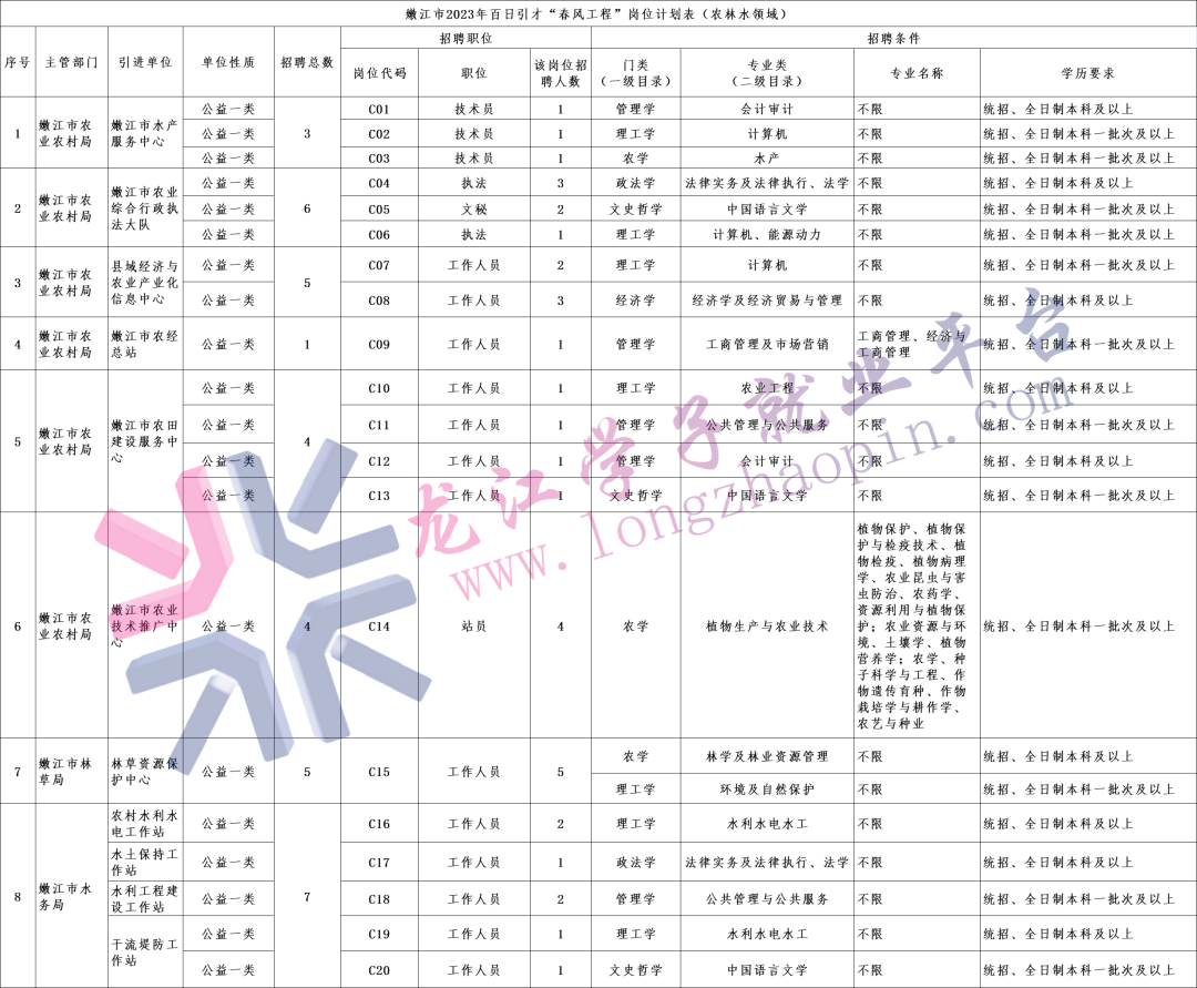 面向社会优选符合资格条件人员。不含嫩江市区域内所属机关事业单位在编在岗人员。