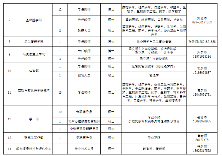 西安医学院是陕西省政府举办的一所全日制普通本科院校,学校前身是创建于1951年的陕西省卫生技术学校。1959年改名为陕西省西安卫生学校,并在此基础上成立陕西省卫生干部进修学院。1994年国家教委批准成立陕西医学高等专科学校。2006年2月经教育部批准,升格为本科院校,更名为西安医学院。2018年学校被省教育厅确定为“一流学院”建设单位。学校现已成为一所医、理、文、管多学科专业相互支撑、交叉融合的医学类院校。根据学校发展需要,拟公开招聘一批专任教师、专职辅导员、专业技术人员。现按照上级相关政策和学校有关规定,公告如下: