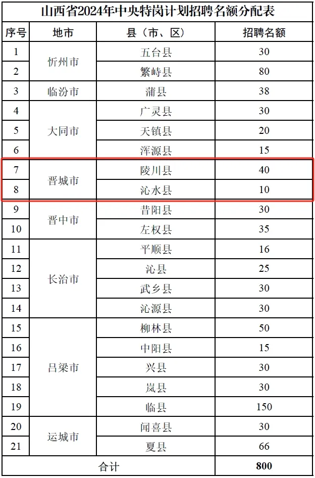 中央特岗计划800名