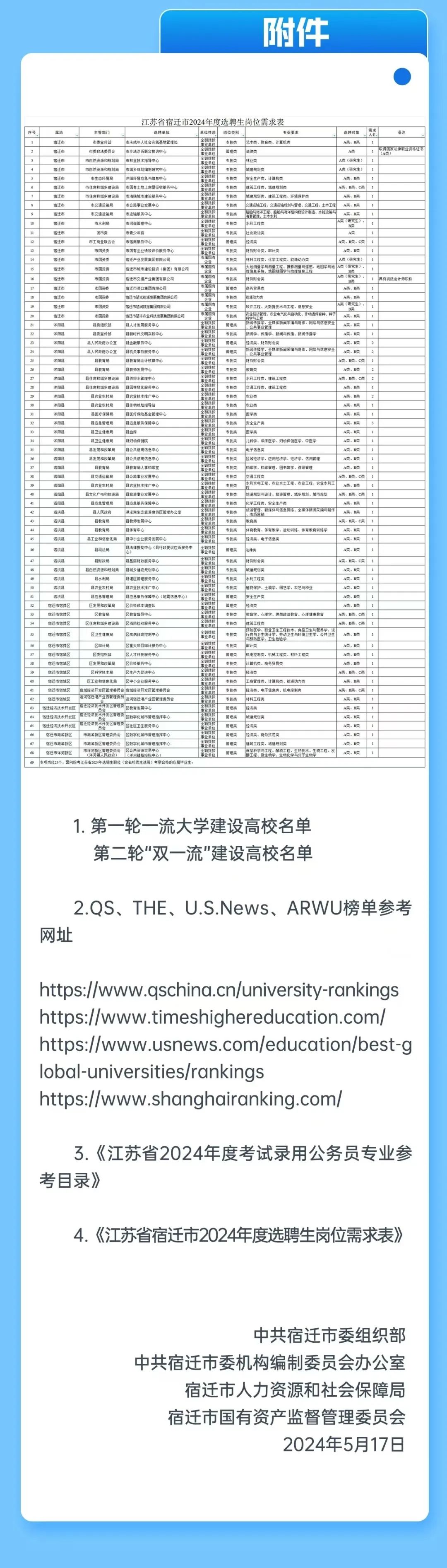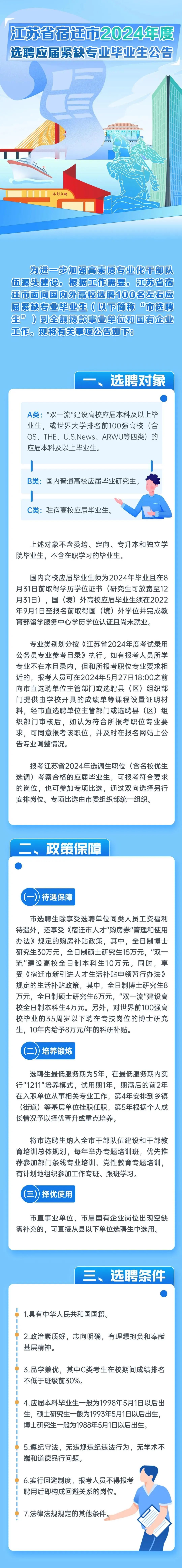 【招聘快讯】| 江苏省宿迁市2024年度选聘应届紧缺专业毕业生公告