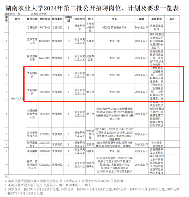 招聘信息通过湖南省人力资源和社会保障(http://rst.hunan.gov.cn/)、湖南农业大学官网向社会公开发布。