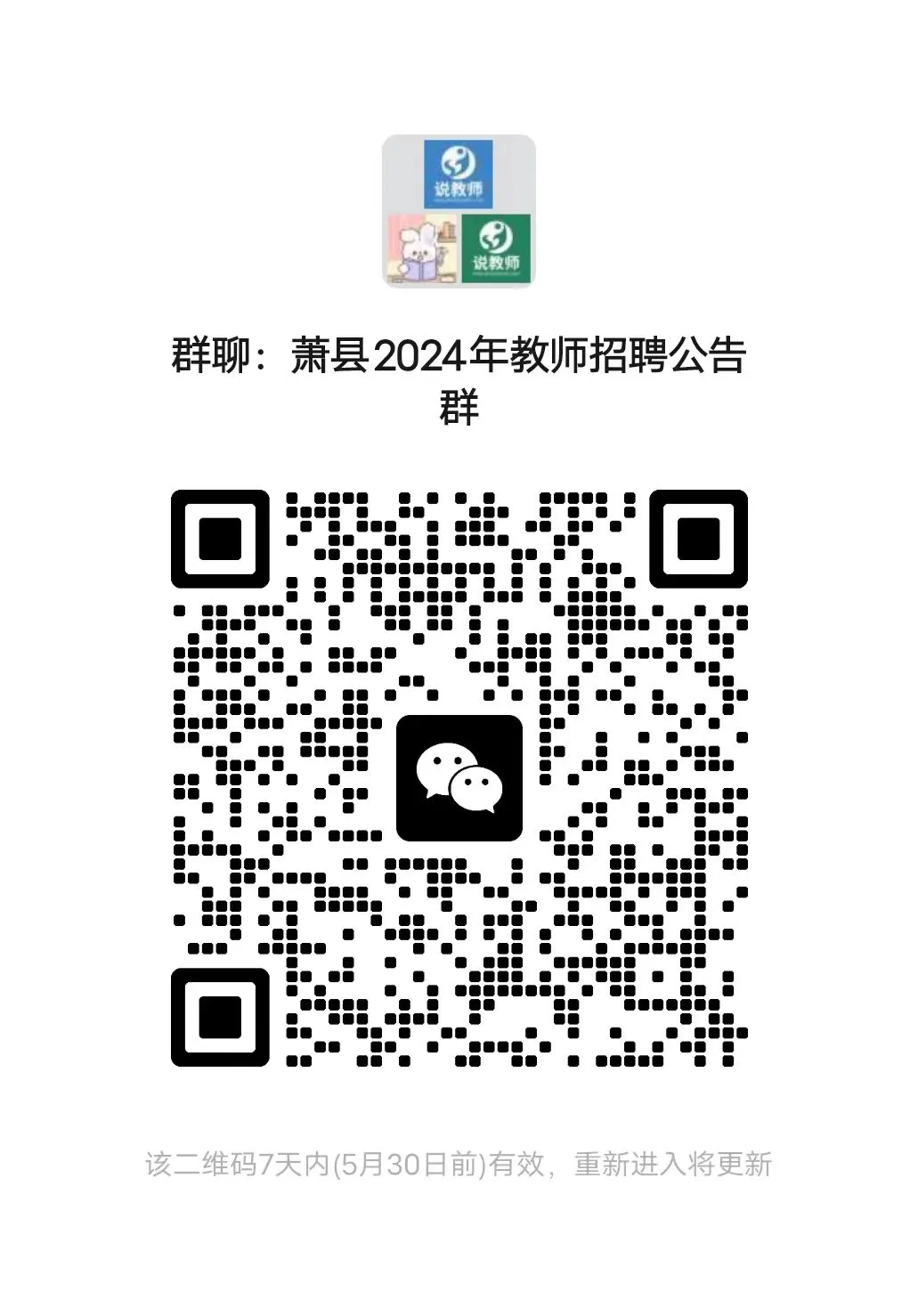 请速度扫码进考试报名群 群满请添加微信:shuojiaoshi365  岗位条件和要求中“专业”依据教育部公布的《普通高等学校本科专业目录》、《研究生学科、专业参考目录》等专业(学科)指导目录设置。考生所学专业以毕业证书专业为准,不可以凭专业(学业)证书、结业证书、辅修证书、毕业证书上的辅修专业报考。毕业证书上专业后面带括号,考生只能以括号以外的专业名称报考相符合的岗位。 2.热爱教育事业,具有良好的职业道德,遵纪守法,无不良行为记录; 3.年龄30周岁以下(1993年5月及以后出生),博士研究生报考,年龄可放宽到35周岁以下(1988年5月及以后出生); 4.岗位所需要的其他条件,详见《岗位计划表》;博士研究生不限定博士阶段专业,前置学历满足岗位专业需求即可; 2.曾因犯罪受过刑事处罚的人员和曾被开除公职的人员,受到党纪政纪处分期限未满或者正在接收纪律审查的人员、处于刑事处罚期间或者正在接受司法调查尚未做出结论的人员; 3.有与招聘岗位职业道德要求不相符的不良记录的人员; 4.在各级各类事业单位公开招聘中因违反《事业单位公开招聘违纪违规行为处理规定》被记入事业单位公开招聘应聘人员诚信档案库,且记录期限未满的人员; 5.法律规定不得参加报考或聘用为事业单位工作人员的其他情形人员。 报考者不得报考聘用后即构成《事业单位人事管理回避规定》第六条所列情形的岗位。 实施线上报名。有报考意向的毕业生需在规定的时间内,按照招聘学校的要求,填写《安徽省宿城第一中学紧缺学科校园招聘教师报名登记表》(附件2)并向指定邮箱18715578160@163.com提交相关材料。 报名时间:2024年5月25日上午8:00-2024年5月30日下午18:00。以邮件发送成功时间为准。提前或逾期的,均不受理。 考生填写并扫描上传《安徽省宿城第一中学紧缺学科校园招聘教师报名登记表》附件2、本人身份证、毕业证(或教育部学籍在线验证报告等学历层次及专业证明材料及在2024年7月31日前能取得毕业证书的承诺书)、学位证(或高校院系出具的如期取得学位证的证明材料及在2024年7月31日前能取得学位证的承诺书)、教师资格证【或《中小学教师资格考试合格证明》或《师范生教师职业能力证书》及在2024年7月31日前能取得教师资格证的承诺书】。报名材料打包后以“校园招聘+姓名+学科”命名发送至报考岗位对应邮箱18715578160@163.com。 考生填写的信息必须与本人实际情况、报考条件和所报考的岗位要求相一致。凡弄虚作假通过资格审查,其实际情况与报考条件规定不符的,一经查实,即取消考试、聘用等资格。 每位考生限报一个岗位,并使用本人有效居民身份证进行报名和参加专业测试。 由招聘学校进行资格审查。报考人员所填信息必须真实无误。凡因弄虚作假通过资格审查的,一经查实,即取消考试或聘用资格。 专业测试前进行报名资格复审。考生所提交的材料(原件、复印件各1份)与网上报名上传的材料要相同。符合报名条件的,发专业测试通知书;不符合报名条件的取消报名资格。 资格审查贯穿招聘工作全过程。凡在招聘工作各个环节发现报名人员不符合岗位条件要求或者弄虚作假等问题的,一经查实立即取消考核、聘用等资格。 专业测试包括教学设计、课堂教学和面试答辩三个环节。专业测试成绩当场公布。因故不能按时参加专业测试的人员,视为主动放弃。 1.教学设计。满分100分。根据各学科指定的相关教材内容进行教学设计(备课),时间为60分钟。 2.课堂教学。满分100分。课堂教学为备课后进行无生上课,时间为15分钟。 3.面试答辩(技能考核)。满分为100分。面试答辩对考生教育教学思想、教育教学能力等进行现场提问,考生现场答辩,时间为5分钟。 4.成绩计算。最终专业测试成绩按教学设计成绩的10%+课堂教学成绩的70%+面试答辩成绩的20%合成。专业测试总分为100分(最终专业测试成绩按百分制计算,各分项成绩保留小数点后一位,小数点第二位四舍五入),总成绩设定最低分数线70分(不含70分),无生上课成绩设定最低分数线56分(不含56分)。总成绩低于设定最低分数线、或总成绩达到设定最低分数线但无生上课成绩低于设定最低分数线的,均不予录用。 按所选聘岗位考生专业测试成绩,从高分到低分按1:1比例等额确定进入体检人选。入围人员与招聘学校签订高校毕业生就业三方协议。若专业测试成绩相同,先后以课堂教学成绩、面试答辩成绩、教学设计成绩得分高者入围体检环节。 体检标准参照省委组织部、省人力资源和社会保障厅、省卫生厅《关于进一步规范全省事业单位公开招聘人员体检工作的通知》(皖人社秘〔2013〕208号)等规定执行。 对体检合格者进行考察。考察将通过所在学校进行了解、个别谈话和查阅档案等方式进行,重点考察应聘者在思想政治素质、道德品质、学业成绩、业务能力、心理健康等方面的表现。考察工作由招聘单位会同市教体局等相关部门组织实施。 考察内容主要包括应聘者的思想政治表现、道德品质、业务能力、工作实绩(学业成绩)、遵纪守法等方面情况,以及是否具有报考回避的情形等方面的情况。 根据《关于加快推进失信被执行人信用监督、警示和惩戒机制建设的实施意见》(皖办发〔2017〕24号)等文件精神,考察结束时考察对象仍属于失信被执行人的,考察环节不予合格。 体