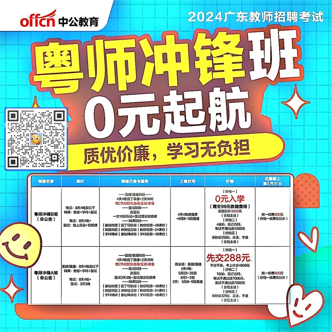 —本文包含广告营销信息— 扫描添加回复【湛江】 进入24湛江教师备考群 了解编制信息、考情、在线答疑 ▼扫码立即咨询▼ 2024广东湛江市遂溪县 招聘教师170人公告 为进一步优化我县教师队伍建设,满足基础教育高质量发展需求,根据《事业单位人事管理条例》《广东省事业单位公开招聘人员办法》(粤府令第301号),按照公开、平等、竞争、择优的原则,现面向社会公开招聘教师,有关事项公告如下: 一、招聘名额及岗位 (一)招聘名额:170名。 (二)具体招聘单位、人数、资格条件和要求详见《2024年遂溪县公开招聘教师岗位信息表》(附件1)。 回复【湛江】获取公告链接 二、招聘对象和条件 (一)招聘对象 招聘对象为具有国家承认的大专及以上学历人员。其中,报考各中学、小学和职业技术学校岗位的须具有本科及以上学历并取得学士及以上学位。 1.国内普通高等学校2024届毕业生(非在职)须于2024年8月31日前取得相应毕业证书、学位证书、教师资格证及其他证书证明材料。 2.其他报考人员须于报名截止之日前取得相应毕业证书、学位证书、教师资格证及其他证书证明材料。 (二)招聘条件 1.具有中华人民共和国国籍; 2.遵守宪法和法律; 3.拥护中国共产党领导和社会主义制度; 4.具备良好的政治素质和道德品行; 5.适应岗位要求的身体条件; 6.具有招聘岗位所需的专业、资格及其他条件; 7.年龄35周岁以下(1988年5月30日及以后出生);以硕士、博士研究生为最高学历报考的,报考年龄放宽到40周岁(1983年5月30日及以后出生); 8.招聘公告要求的其他条件。 有下列情形之一者,不得报考: 1.受过刑事处罚的; 2.被开除中国共产党党籍的; 3.被开除公职的; 4.被依法列为失信联合惩戒对象的; 5.现役军人、国家机关事业单位在编在岗人员; 6.法律、法规规定的其他情形。 三、岗位待遇 聘用人员使用公益一类事业单位编制,薪酬待遇执行国家、省、市有关政策规定。 四、报名办法 (一)网上报名 本次招聘实行网络报名。应聘人员请于2024年5月30日8:30至6月5日17:00登录全国事业单位招聘网(网址:http://www.qgsydw.com,以下简称“报名系统”)报名。应聘人员只能选择一个岗位报名。5月30日至6月4日每天10:00和16:00,系统将发布各岗位报名人数。 (二)报名程序 1.申请报考。报考人员应仔细阅读本公告,准确把握具体岗位的资格条件,确认符合条件后在公告规定的时间内登录报名系统,按网上提示方法进行注册、填写报名信息,并上传相关资料。 考生报名时应如实填写资料,并上传相关资料。未按规定上传照片、上传虚假照片或填写虚假资料的,一经发现,即取消报考或考试资格。 2.初步审核。报名系统将自动实时对报考人员提交的报名信息进行初审。 3.报名确认。考生须在2024年6月6日9:00至6月7日17:00内登录报名系统确认是否参加笔试,未按规定时间进行确认的考生视为报名不成功。 4.网上打印笔试准考证。确认参加笔试的报考人员登录报名系统下载打印笔试准考证。笔试准考证具体打印时间另行公告,请考生密切留意遂溪县人民政府网站信息。不按时打印笔试准考证导致无法参加考试的,后果自行承担。笔试准考证是考生参加考试各环节的重要证件,请自行妥善保管。考生参加笔试、资格审核、面试、体检时,必须同时携带笔试准考证和本人有效二代居民身份证(与报名时一致)。证件不齐,或者笔试准考证中的姓名、身份证号和居民身份证中的不一致的,取消相应资格。 (三)报名注意事项 1.报考人员只能选择一个岗位报名,报考多个岗位的,取消报名资格。报名必须使用有效期内的二代居民身份证。 2.报考人员须上传个人近期免冠彩色渐蓝底的正面大一寸证件照(文件不得大于50KB)、二代居民身份证、毕业证书(2024届毕业生上传学生证及就业推荐表)、学位证书(招聘岗位没有学位要求的无需上传)、教师资格证书。 3.根据《关于引导和鼓励高校毕业生到农村基层从事支教、支农、支医和扶贫工作的实施意见》(粤人社发〔2007〕141号)、《广东省选聘高校毕业生到村任职工作实施意见》(粤组通〔2008〕50号)等有关规定,服务期满考核合格3年内的“三支一扶”高校毕业生和“大学生村官”等服务基层人员参加本次招聘教师考试,笔试成绩加10分,报名时须上传省级主管部门颁发的《广东省“三支一扶”合格证书》或《广东省高校毕业生到农村任职工作证书》等服务基层证书。请符合加分条件的考生于2024年6月12日至6月13日提交《广东省“三支一扶”合格证书》或《广东省高校毕业生到农村任职工作证书》等材料(原件和复印件一式一份)到遂溪县教育局人事股进行加分申请。公布的考生笔试成绩为加分后的成绩。 4.报考岗位的专业参照《广东省2024年考试录用公务员专业参考目录》(附件2)执行,报考者不得报考所学专业代码与招聘岗位要求的专业代码不一致的岗位,如所学专业为专业目录中旧专业名称的,应按照对应的专业名称及代码报考。报考人员所学专业按取得的毕业证书上的专业为准,毕业证书上的专业名称后面括号等形式列出的培养方向以及学位证书上的学位种类不作为专业依据。相关证书类别、具体材料及资格条件表述必须与岗位要求相一致。 5.所学专业如未列入专业目录(没有专业代码)的,可选择与该专业目录中的相近专业报考,所学专业必修课程须与招聘岗位要