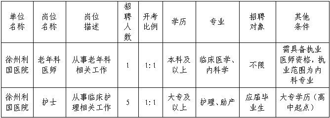 (三)报名地点:徐州市铜山区利国镇徐州利国医院医技楼二楼人事科。