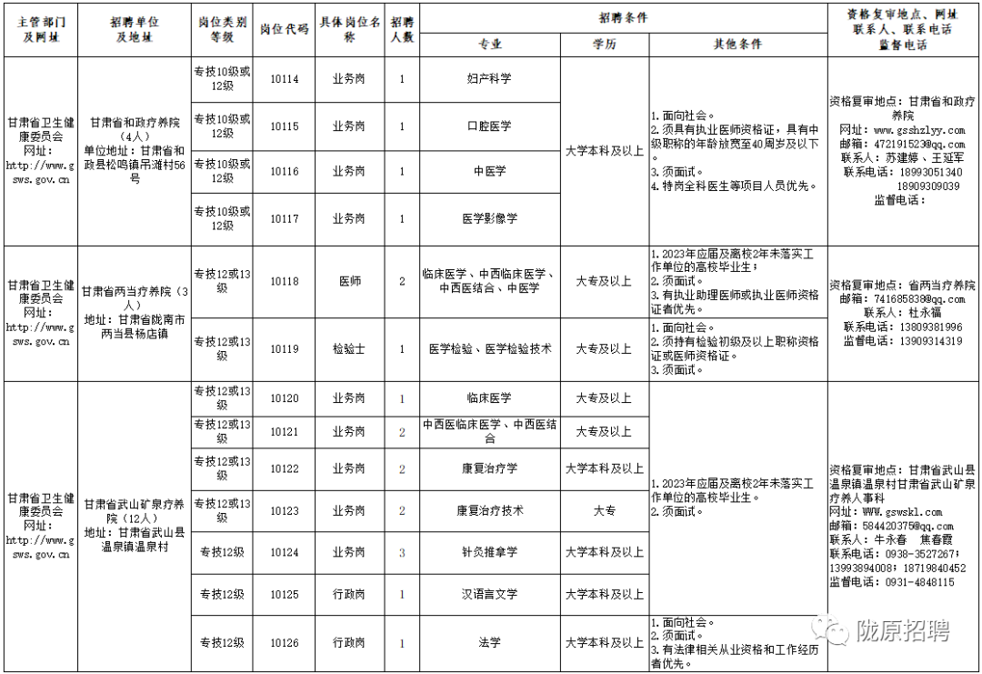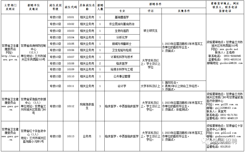 (二)复审时间在甘肃省卫生健康委员会网站上公布,并由招聘单位电话及邮件通知考生本人,请考生保持通讯畅通并及时查收邮件。