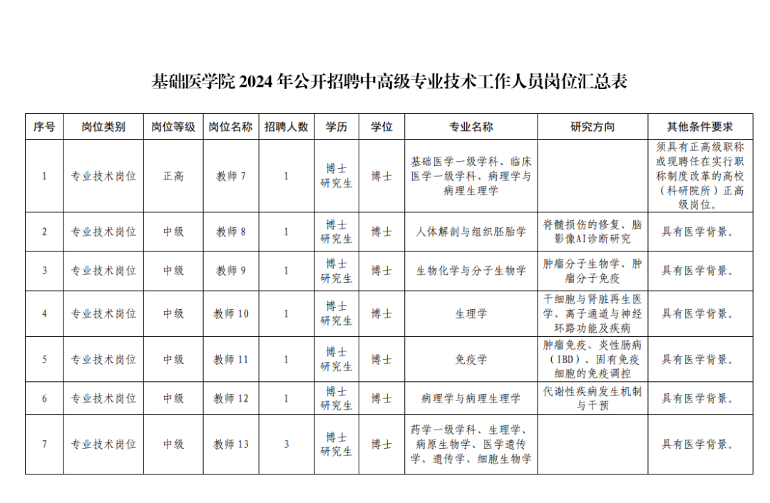 基础医学院2024年公开招聘中高级专业技术工作人员岗位汇总表.pdf