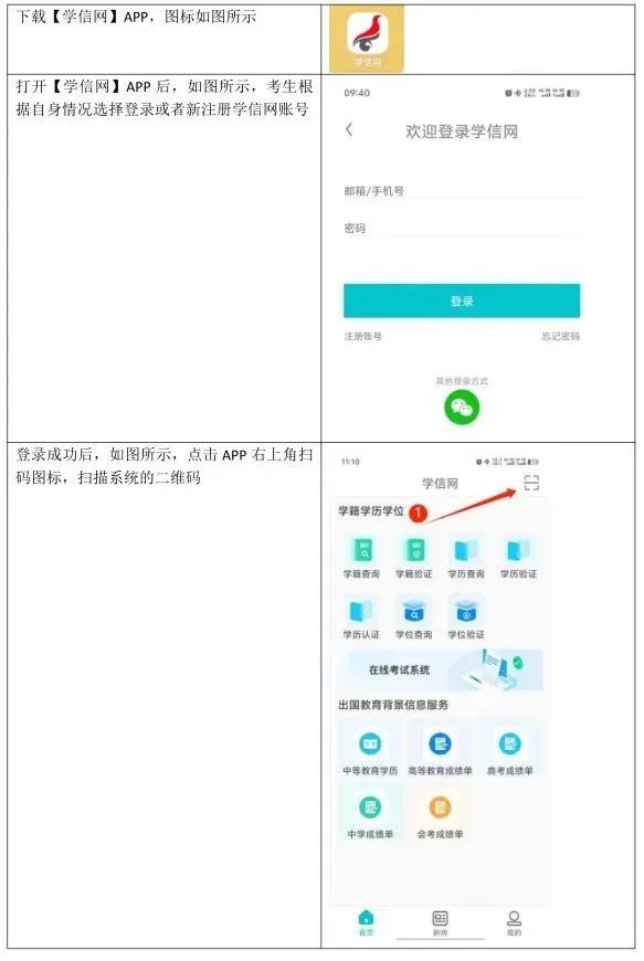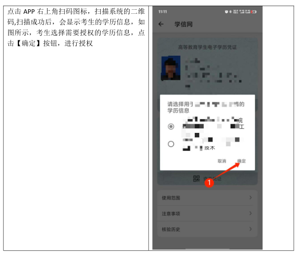 考生填写完毕后,点击保存按钮,会弹出学历认证页面,考生使用学信网APP扫码授权后,页面显示学信网验证状态。若未通过,可点击“重新核验”按钮再次进行验证。