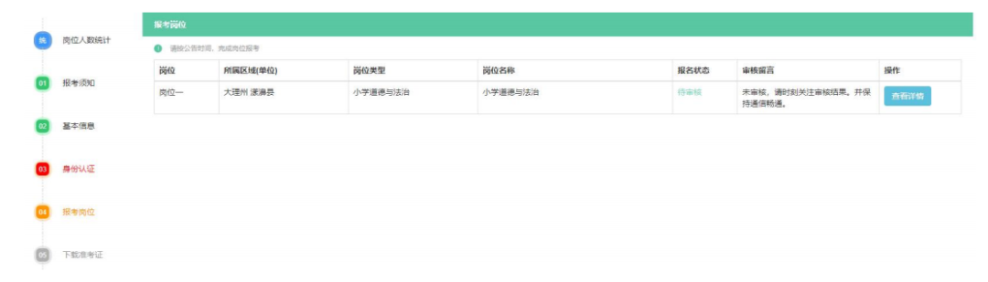 点击“返回”按钮后,返回报考岗位页面,持续关注报考岗位审核状态
