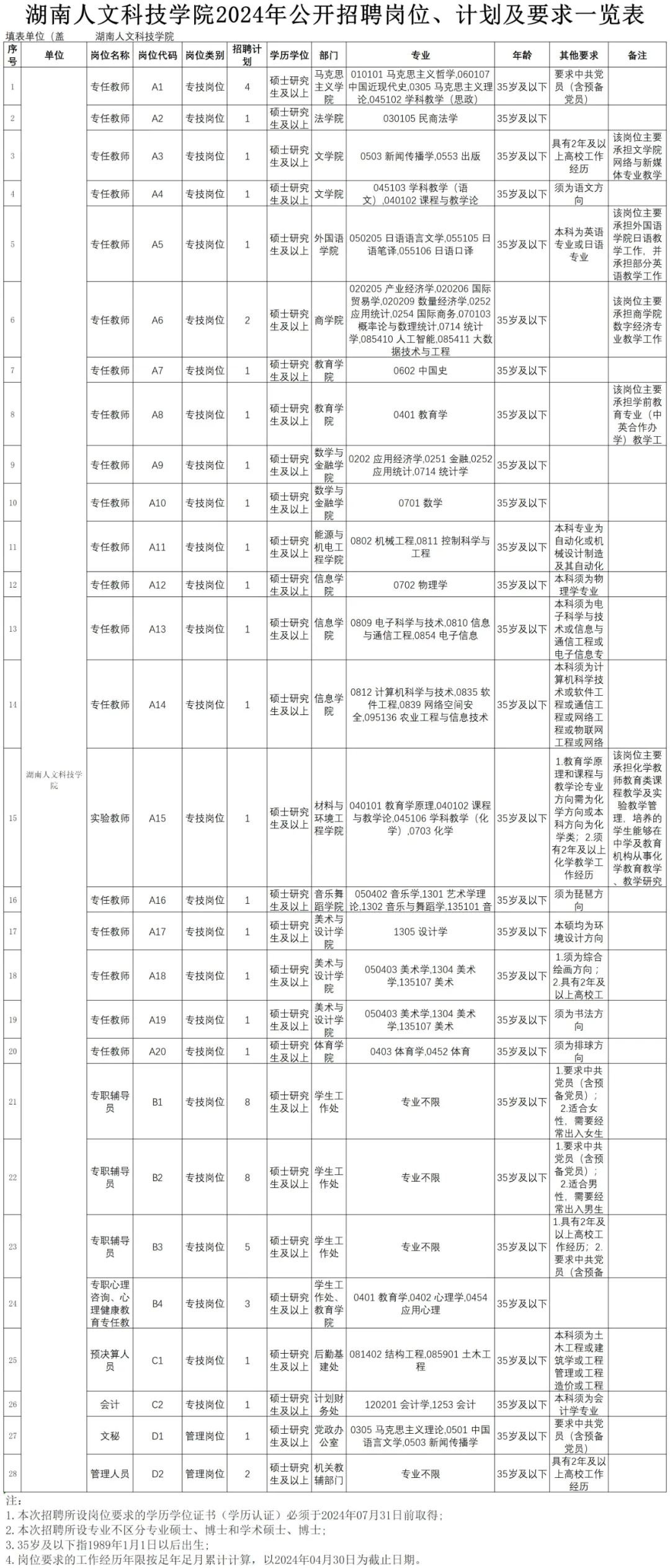 招聘信息通过湖南省人力资源和社会保障厅(http://rst.hunan.gov.cn/)、湖南人文科技学院网站面向社会公开发布。