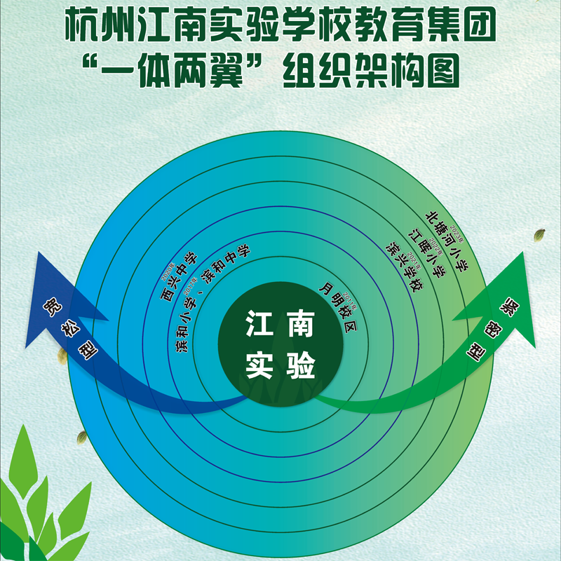杭州江南实验学校教育集团实行“一体两翼”式发展战略,已发展成为拥有一个核心校、六所成员校的大型教育集团。集团全面落实区教育系统工作部署,坚持党建引领,坚定教育理想信念,以“集团化、特色化、国际化”为特色的江南教育,在省、市、区具有较强影响力、较高知名度。