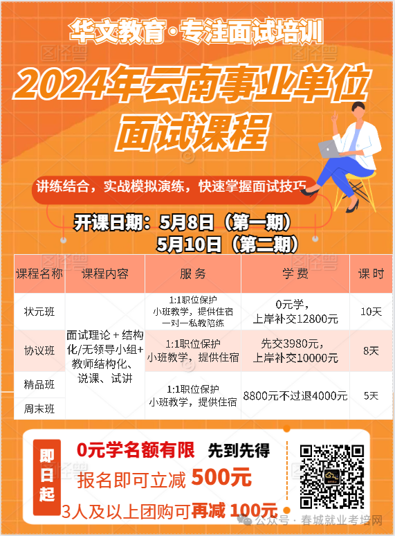 昆明华文教育专业从事公务员、事业单位、教师招聘、国企招聘等考前培训(面试),采用小班教学,注重一对一演练。