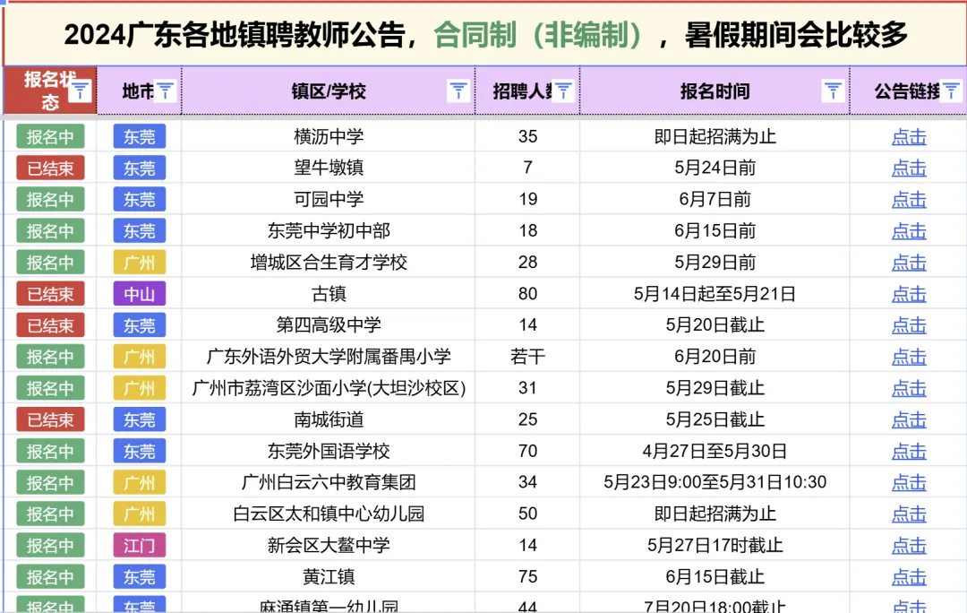 1.中山市横栏镇公办学校2024年招聘第一批临聘教师岗位表