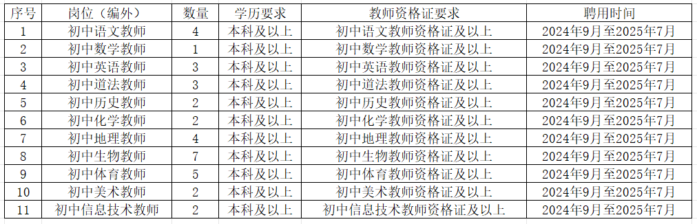 1.要求:普通话二乙及以上,师德优良,身体健康,工作认真负责,团队合作意识强。骨干教师、学科带头人、名师、名班主任优先聘用。