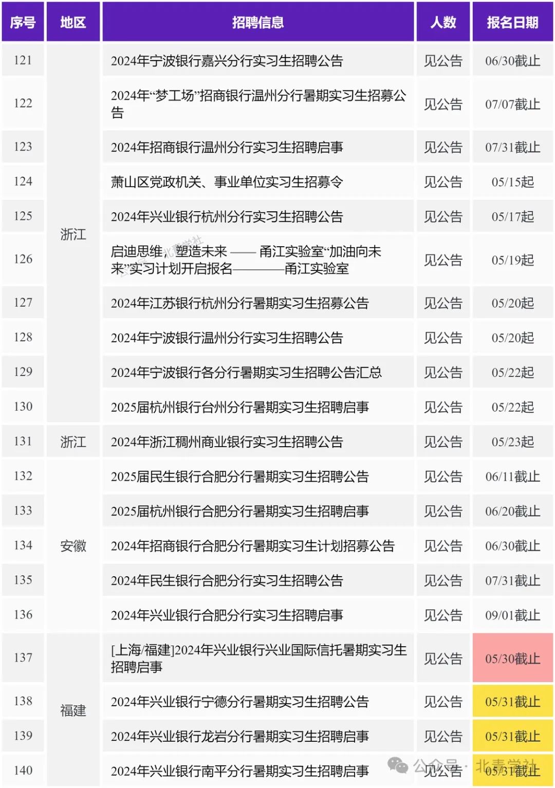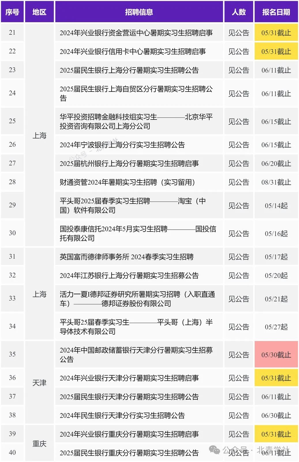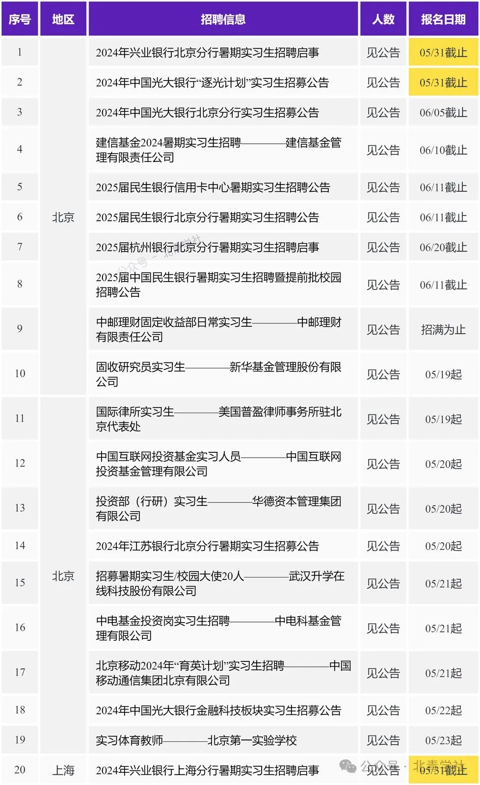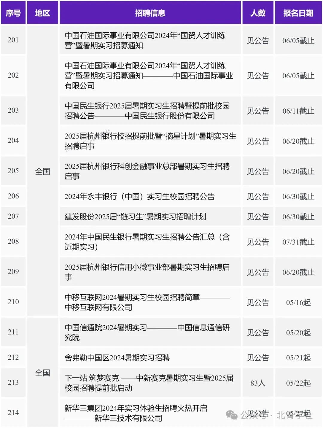 本期职位目录 北京 2024年兴业银行北京分行暑期实习生招聘启事 https://ux.bqstudy.com/a/u/663d6f45b75b249de1daf603 2024年中国光大银行“逐光计划”实习生招募公告 https://ux.bqstudy.com/a/u/664d49e9bfd29579be53b835 2024年中国光大银行北京分行实习生招募公告 https://ux.bqstudy.com/a/u/664ea9aff242965ffdaa2520 建信基金2024暑期实习生招聘————建信基金管理有限责任公司 https://ux.bqstudy.com/a/u/6649f2bd881fb3516f2504aa 2025届民生银行信用卡中心暑期实习生招聘公告 https://ux.bqstudy.com/a/u/6649ee345ce3cb77464a144d 2025届民生银行北京分行暑期实习生招聘公告 https://ux.bqstudy.com/a/u/6649ee325ce3cb77464a1449 2025届杭州银行北京分行暑期实习生招聘启事 https://ux.bqstudy.com/a/u/664ea9d1f242965ffdaa254a 2025届中国民生银行暑期实习生招聘暨提前批校园招聘公告 https://ux.bqstudy.com/a/u/6649ee3a5ce3cb77464a1457 中邮理财固定收益部日常实习生————中邮理财有限责任公司 https://ux.bqstudy.com/a/u/6649f2af881fb3516f250493 固收研究员实习生————新华基金管理股份有限公司 https://ux.bqstudy.com/a/u/6655258f238e1817252792ce 国际律所实习生————美国普盈律师事务所驻北京代表处 https://ux.bqstudy.com/a/u/6649f2c7881fb3516f2504ba 中国互联网投资基金实习人员————中国互联网投资基金管理有限公司 https://ux.bqstudy.com/a/u/664d4c39bfd29579be53b91a 投资部(行研)实习生————华德资本管理集团有限公司 https://ux.bqstudy.com/a/u/664d4c37bfd29579be53b918 2024年江苏银行北京分行暑期实习生招募公告 https://ux.bqstudy.com/a/u/664b38f6d3123228b81812c1 招募暑期实习生/校园大使20人————武汉升学在线科技股份有限公司 https://ux.bqstudy.com/a/u/664eac79f242965ffdaa25e4 中电基金投资岗实习生招聘————中电科基金管理有限公司 https://ux.bqstudy.com/a/u/664d4c50bfd29579be53b93a 北京移动2024年“育英计划”实习生招聘————中国移动通信集团北京有限公司 https://ux.bqstudy.com/a/u/664d4c3fbfd29579be53b924 2024年中国光大银行金融科技板块实习生招募公告 https://ux.bqstudy.com/a/u/664ea9aef242965ffdaa251e 实习体育教师————北京第一实验学校 https://ux.bqstudy.com/a/u/665525aa238e1817252792f8 上海 2024年兴业银行上海分行暑期实习生招聘启事 https://ux.bqstudy.com/a/u/663d6f46b75b249de1daf605 2024年兴业银行资金营运中心暑期实习生招聘启事 https://ux.bqstudy.com/a/u/663d6f3fb75b249de1daf5f7 2024年兴业银行信用卡中心暑期实习生招聘启事 https://ux.bqstudy.com/a/u/663d6f34b75b249de1daf5e5 2025届民生银行上海分行暑期实习生招聘公告 https://ux.bqstudy.com/a/u/6649ee375ce3cb77464a1453 2025届民生银行上海自贸区分行暑期实习生招聘公告 https://ux.bqstudy.com/a/u/6649ee365ce3cb77464a1451 华平投资招聘金融科技组实习生————北京华平投资咨询有限公司上海分公司 https://ux.bqstudy.com/a/u/665525b0238e181725279300 2024年宁波银行上海分行实习生招聘公告 https://ux.bqstudy.com/a/u/66533035a64af7db4c8bf3fc 2025届杭州银行上海分行暑期实习生招聘启事 https://ux.bqstudy.com/a/u/664ea9cdf242965ffdaa2544 财通资管2024年暑期实习生招聘(实习留用) https://ux.bqstudy.com/a/u/66343311d6606965c06eeb17 平头哥2025届春季实习生招聘————淘宝(中国)软件有限公司 https://ux.bqstudy.com/a/u/6644910801710d1a87584af5 国投泰康信托2024年5月实习生招聘————国投信托有限公司 https://ux.bqstudy.com/a/u/6649f2ae881fb3516f250491 英国富而德律师事务所 2024春季实习生招聘 https://ux.bqstudy.com/a/u/6649f32e881fb3516f2505e7 2024年江苏银行上海分行暑期实习生招募公告 https://ux.bqstudy.com/a/u/664b38f5d3123228b81812bf 活力一夏I德邦证券研究所暑期实习招聘(入职直通车)————德邦证券股份有限公司 https://ux.bqstudy.com/a/u/664d4c48bfd29579be53b92e 平头哥25届春季实习生————平头哥(上海)半导体技术有限公司 https://ux.bqstudy.com/a/u/665525c8238e181725279326 天津 2024年中国邮政储蓄银行天津分行暑期实习生招募公告 https://ux.bqstudy.com/a/u/6649ede35ce3cb77464a13c6 2024年兴业银行天津分行暑期实习生招聘启事 https://ux.bqstudy.com/a/u/663d6f2eb75b249de1daf5d9 2025届民生银行天津分行暑期实习生招聘公告 https://ux.bqstudy.com/a/u/6649ee205ce3cb77464a1429 2024年民生银行天津分行实习生招聘公告 https://ux.bqstudy.com/a/u/66409cc139db832d2e67a135 重庆 2024年兴业银行重庆分行暑期实习生招聘启事 https://ux.bqstudy.com/a/u/663d6f43b75b249de1daf5ff 2025届民生银行重庆分行暑期实习生招聘公告 https://ux.bqstudy.com/a/u/6649ee2c5ce3cb77464a143f 长安福特新能源汽车有限公司2024暑期实习生招聘 https://ux.bqstudy.com/a/u/6649f329881fb3516f2505de 长安福特新能源汽车有限公司2024暑期实习生活动招聘启事————长安福特汽车有限公司 https://ux.bqstudy.com/a/u/665525b3238e181725279304 广东 2024年兴业银行深圳分行暑期实习生招聘启事 https://ux.bqstudy.com/a/u/663d6f3ab75b249de1daf5ef 2024年顺德农商银行暑期实习生招聘公告 https://ux.bqstudy.com/a/u/66409cde39db832d2e67a160 2024年招商银行广州分行实习生招聘公告 https://ux.bqstudy.com/a/u/664d49f2bfd29579be53b847 [广东/北京]2025届民生银行总行金融科技暑期实习生招聘公告 https://ux.bqstudy.com/a/u/6649ee395ce3cb77464a1455 2025届民生银行广州分行暑期实习生招聘公告 https://ux.bqstudy.com/a/u/6649ee1b5ce3cb77464a1421 2025届民生银行深圳分行暑期实习生招聘公告 https://ux.bqstudy.com/a/u/6649ee0e5ce3cb77464a140d 2025届民生银行汕头分行暑期实习生招聘公告 https://ux.bqstudy.com/a