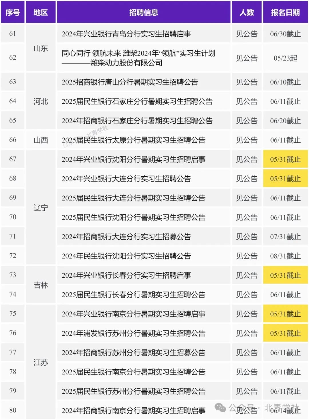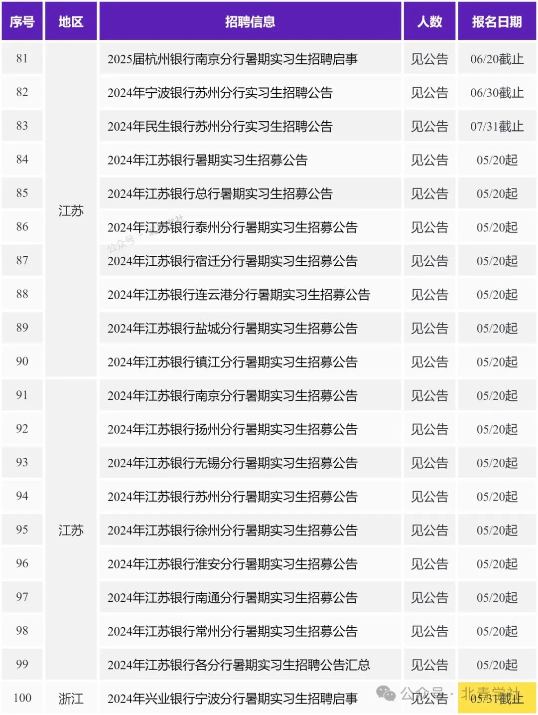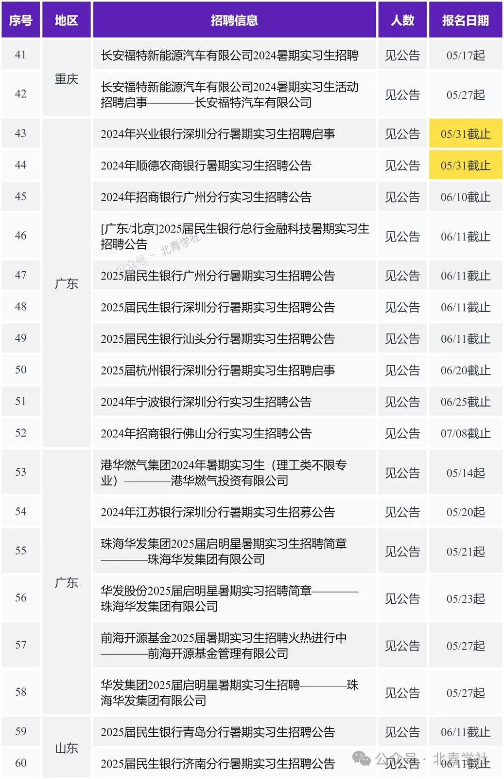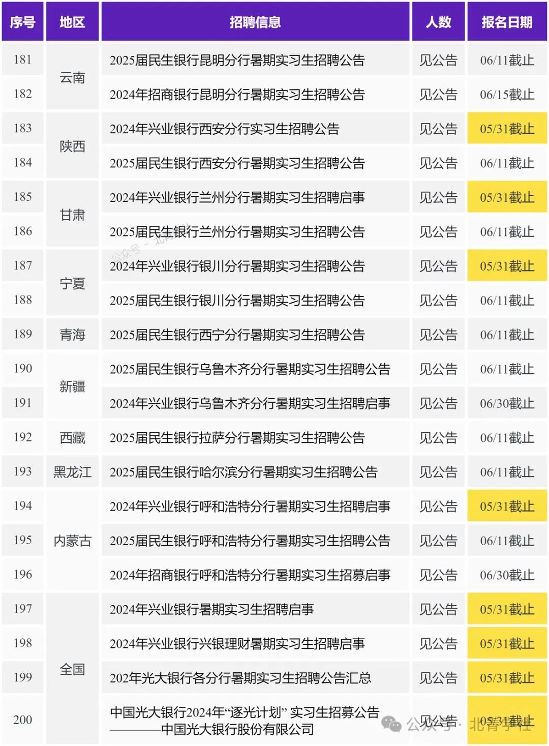 本期职位目录 北京 2024年兴业银行北京分行暑期实习生招聘启事 https://ux.bqstudy.com/a/u/663d6f45b75b249de1daf603 2024年中国光大银行“逐光计划”实习生招募公告 https://ux.bqstudy.com/a/u/664d49e9bfd29579be53b835 2024年中国光大银行北京分行实习生招募公告 https://ux.bqstudy.com/a/u/664ea9aff242965ffdaa2520 建信基金2024暑期实习生招聘————建信基金管理有限责任公司 https://ux.bqstudy.com/a/u/6649f2bd881fb3516f2504aa 2025届民生银行信用卡中心暑期实习生招聘公告 https://ux.bqstudy.com/a/u/6649ee345ce3cb77464a144d 2025届民生银行北京分行暑期实习生招聘公告 https://ux.bqstudy.com/a/u/6649ee325ce3cb77464a1449 2025届杭州银行北京分行暑期实习生招聘启事 https://ux.bqstudy.com/a/u/664ea9d1f242965ffdaa254a 2025届中国民生银行暑期实习生招聘暨提前批校园招聘公告 https://ux.bqstudy.com/a/u/6649ee3a5ce3cb77464a1457 中邮理财固定收益部日常实习生————中邮理财有限责任公司 https://ux.bqstudy.com/a/u/6649f2af881fb3516f250493 固收研究员实习生————新华基金管理股份有限公司 https://ux.bqstudy.com/a/u/6655258f238e1817252792ce 国际律所实习生————美国普盈律师事务所驻北京代表处 https://ux.bqstudy.com/a/u/6649f2c7881fb3516f2504ba 中国互联网投资基金实习人员————中国互联网投资基金管理有限公司 https://ux.bqstudy.com/a/u/664d4c39bfd29579be53b91a 投资部(行研)实习生————华德资本管理集团有限公司 https://ux.bqstudy.com/a/u/664d4c37bfd29579be53b918 2024年江苏银行北京分行暑期实习生招募公告 https://ux.bqstudy.com/a/u/664b38f6d3123228b81812c1 招募暑期实习生/校园大使20人————武汉升学在线科技股份有限公司 https://ux.bqstudy.com/a/u/664eac79f242965ffdaa25e4 中电基金投资岗实习生招聘————中电科基金管理有限公司 https://ux.bqstudy.com/a/u/664d4c50bfd29579be53b93a 北京移动2024年“育英计划”实习生招聘————中国移动通信集团北京有限公司 https://ux.bqstudy.com/a/u/664d4c3fbfd29579be53b924 2024年中国光大银行金融科技板块实习生招募公告 https://ux.bqstudy.com/a/u/664ea9aef242965ffdaa251e 实习体育教师————北京第一实验学校 https://ux.bqstudy.com/a/u/665525aa238e1817252792f8 上海 2024年兴业银行上海分行暑期实习生招聘启事 https://ux.bqstudy.com/a/u/663d6f46b75b249de1daf605 2024年兴业银行资金营运中心暑期实习生招聘启事 https://ux.bqstudy.com/a/u/663d6f3fb75b249de1daf5f7 2024年兴业银行信用卡中心暑期实习生招聘启事 https://ux.bqstudy.com/a/u/663d6f34b75b249de1daf5e5 2025届民生银行上海分行暑期实习生招聘公告 https://ux.bqstudy.com/a/u/6649ee375ce3cb77464a1453 2025届民生银行上海自贸区分行暑期实习生招聘公告 https://ux.bqstudy.com/a/u/6649ee365ce3cb77464a1451 华平投资招聘金融科技组实习生————北京华平投资咨询有限公司上海分公司 https://ux.bqstudy.com/a/u/665525b0238e181725279300 2024年宁波银行上海分行实习生招聘公告 https://ux.bqstudy.com/a/u/66533035a64af7db4c8bf3fc 2025届杭州银行上海分行暑期实习生招聘启事 https://ux.bqstudy.com/a/u/664ea9cdf242965ffdaa2544 财通资管2024年暑期实习生招聘(实习留用) https://ux.bqstudy.com/a/u/66343311d6606965c06eeb17 平头哥2025届春季实习生招聘————淘宝(中国)软件有限公司 https://ux.bqstudy.com/a/u/6644910801710d1a87584af5 国投泰康信托2024年5月实习生招聘————国投信托有限公司 https://ux.bqstudy.com/a/u/6649f2ae881fb3516f250491 英国富而德律师事务所 2024春季实习生招聘 https://ux.bqstudy.com/a/u/6649f32e881fb3516f2505e7 2024年江苏银行上海分行暑期实习生招募公告 https://ux.bqstudy.com/a/u/664b38f5d3123228b81812bf 活力一夏I德邦证券研究所暑期实习招聘(入职直通车)————德邦证券股份有限公司 https://ux.bqstudy.com/a/u/664d4c48bfd29579be53b92e 平头哥25届春季实习生————平头哥(上海)半导体技术有限公司 https://ux.bqstudy.com/a/u/665525c8238e181725279326 天津 2024年中国邮政储蓄银行天津分行暑期实习生招募公告 https://ux.bqstudy.com/a/u/6649ede35ce3cb77464a13c6 2024年兴业银行天津分行暑期实习生招聘启事 https://ux.bqstudy.com/a/u/663d6f2eb75b249de1daf5d9 2025届民生银行天津分行暑期实习生招聘公告 https://ux.bqstudy.com/a/u/6649ee205ce3cb77464a1429 2024年民生银行天津分行实习生招聘公告 https://ux.bqstudy.com/a/u/66409cc139db832d2e67a135 重庆 2024年兴业银行重庆分行暑期实习生招聘启事 https://ux.bqstudy.com/a/u/663d6f43b75b249de1daf5ff 2025届民生银行重庆分行暑期实习生招聘公告 https://ux.bqstudy.com/a/u/6649ee2c5ce3cb77464a143f 长安福特新能源汽车有限公司2024暑期实习生招聘 https://ux.bqstudy.com/a/u/6649f329881fb3516f2505de 长安福特新能源汽车有限公司2024暑期实习生活动招聘启事————长安福特汽车有限公司 https://ux.bqstudy.com/a/u/665525b3238e181725279304 广东 2024年兴业银行深圳分行暑期实习生招聘启事 https://ux.bqstudy.com/a/u/663d6f3ab75b249de1daf5ef 2024年顺德农商银行暑期实习生招聘公告 https://ux.bqstudy.com/a/u/66409cde39db832d2e67a160 2024年招商银行广州分行实习生招聘公告 https://ux.bqstudy.com/a/u/664d49f2bfd29579be53b847 [广东/北京]2025届民生银行总行金融科技暑期实习生招聘公告 https://ux.bqstudy.com/a/u/6649ee395ce3cb77464a1455 2025届民生银行广州分行暑期实习生招聘公告 https://ux.bqstudy.com/a/u/6649ee1b5ce3cb77464a1421 2025届民生银行深圳分行暑期实习生招聘公告 https://ux.bqstudy.com/a/u/6649ee0e5ce3cb77464a140d 2025届民生银行汕头分行暑期实习生招聘公告 https://ux.bqstudy.com/a