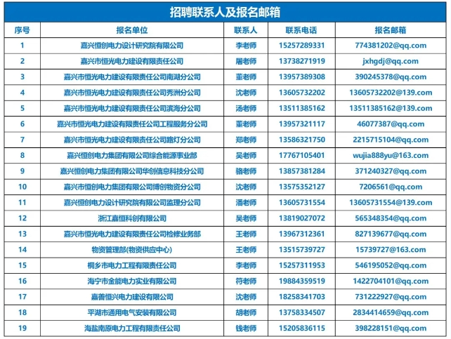 ![]() 1 嘉兴介绍 嘉兴地处浙江省东北部,东接上海,北邻苏州,西连杭州,南濒杭州湾,全市陆域面积4237平方公里,海域面积1523平方公里。全市常住人口552万,下辖南湖、秀洲2个区,平湖、海宁、桐乡3个县级市和嘉善、海盐2个县,均为全国百强县。 2 嘉兴美食 左右滑动查看更多 3 嘉兴文旅 左右滑动查看更多 ![]() 1 恒创集团介绍 嘉兴恒创电力集团有限公司是浙江省电力实业总公司投资,国网嘉兴供电公司代为管理的省管产业经营平台,采用“三会一层”的法人治理结构开展日常经营工作。集团本部设有九个职能部门和五个专业支撑机构,并设立嘉善、平湖、海盐、海宁、桐乡五个县公司分部,对属地省管产业单位实施“人、财、物”集约化管控。集团公司历经 40 年不断发展,共有从业人员3800人,下属9个子公司,22个分公司。作为国家电网公司、浙江省电力公司的先进集体企业单位,现有浙江省安全技术防范行业三级、浙江省住建厅建筑装修装饰工程专业承包二级资质。 集团所属企业的主要资质情况为: 电力设计企业一家,具备电力行业设计专业甲级资质、工程咨询甲级资质、新能源乙级资质;施工安装企业六家,一家企业具备电力工程施工总承包一级资质,其余均具备三级施工总承包资质;工程监理企业一家,具备电力工程、工程咨询监理双乙级资质。 2 恒创集团风采 ![]() ![]() 01 招聘岗位 ![]() (1)供电服务工 ►配电线路检修岗位◄ 主要从事包括电力高处架线等配电线路检修作业,需负重超25公斤工作。 ►非配电线路检修岗位◄ 主要从事除配电线路检修外的其他一线生产工作。 本次嘉兴五县两区共招聘全日制普通高校毕业生40名左右。 主要负责所辖区域各类高、低压用电营销、配电设备运维检修等工作,与嘉兴市众业供电服务有限公司及其分公司签订劳动合同。 (2)产业单位用工 负责承接产业单位业务范围内的电力工程施工、电力工程设计、电力工程监理、电力工程造价等工作,与业务外包单位签订劳动合同,以业务外包方式由外包单位派驻在恒创集团及所属子分公司。(具体招聘岗位详见附件1) ![]() 长按扫描二维码查看附件1 02 招聘条件 ![]() 1、品德修养 遵纪守法,诚实守信,有较强的责任意识、良好的职业道德和团队精神。 2、学历和专业条件 应聘者应是2024年全日制普通高校电工类、电子信息类、能源动力类等工科类及财会类专业应届毕业生,大学专科及以上学历。报名者需于2024年7月底前取得毕业证(本科生需同时取得学位、学历证书)。专业名称以学信网认证的主修专业为准。(具体招聘专业目录详见附件2、附件3) 长按扫描二维码查看附件2、附件3 3、年龄要求 不超过28周岁(1996年8月1日及以后出生)。 4、身体素质要求 身心健康,能够胜任招聘岗位工作要求,并经体检体测合格,患有以下疾病之一者不符合: (1)色盲、双眼矫正视力低于0.8; (2)双耳听力障碍; (3)四肢功能残疾; (4)有恐高症或严重心血管疾病等,不适合电力登高作业生产; (5)其他经指定医疗机构鉴定认为不适合电力作业岗位的情况。 03 薪资待遇 ![]() 薪资待遇:转正后年薪9-15万元(视具体岗位而定) ![]() 地方政府人才引进政策 ![]() 职业发展通道 04 丰富文体 ![]() 左右滑动查看更多 05 工作环境 ![]() 左右滑动查看更多 ![]() 01 报名时间 ![]() 2024年5月28日-2024年6月16日 02 报名方式 ![]() 邮箱报名: ①招聘报名表(附件4)、身份证; ②学信网导出的学籍验证报告; ③资质证书、荣誉证书等。以上材料扫描件以“报名岗位+姓名”命名,以压缩包形式发送至对应单位联系人的报名邮箱。 ![]() 长按扫描二维码领取报名表 03 招聘联系人及报名邮箱 ![]() 产业单位用工 ![]() 供电服务工 ![]() 可电话或添加微信咨询 04 资格审核 ![]() 通过应聘资格审核的应聘人员将进入笔试、面试环节,具体时间、地点另行通知。 05 应聘考试 ![]() 通过应聘考试的应聘人员将进行公司统一组织的体检体测环节,具体时间、地点另行通知。 06 其他注意事项 ![]() 1.学历信息以在中国高等教育学生信息网(学信网)上核实为准。 2.请应聘人员保持手机畅通,符合招聘条件的进入笔试面试,将通过手机短信、电话等方式通知其本人笔试面试的时间、地点;未收到通知的,不再另行通知。 3.其他未尽事宜由嘉兴恒创电力集团有限公司负责解释。 编辑:李佩颖 审核:王 丹 ![]() |