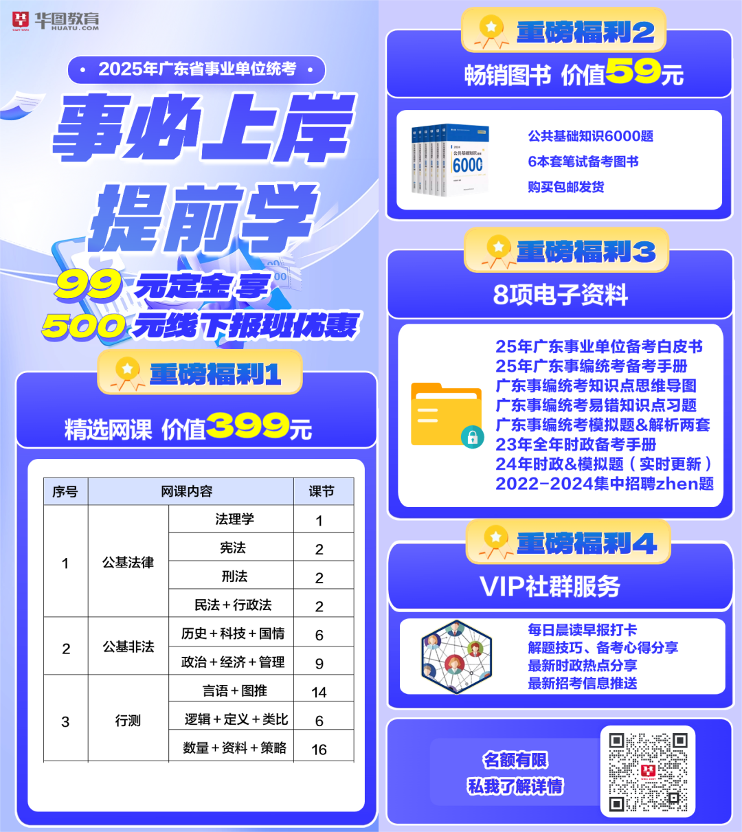 群满200人扫码回复 “事业编”进群 等忙完这一阵 就可以接着忙下一阵了 👇扫码回复【528】获取公告全文👇 招聘人数:163人 报名时间:5月27日至5月31日 考核内容:笔试+面试 学历要求:本科及以上 福利待遇:录用人员正式报到后,各招录单位按照《深圳市劳动合同制司法辅助人员管理改革方案》及《劳动合同法》的规定和要求,签订劳动合同。 招聘人数:14人(事业编制) 报名时间:5月31日至6月30日 考核内容:直接业务考核 学历要求:博士研究生 福利待遇:获聘人员为事业单位编制人员,享受国家及省政策规定的薪酬待遇。 招聘人数:21人 报名时间:5月28日至6月5日 考核内容:笔试+面试+专业技能操作 学历要求:大专及以上 福利待遇:录用人员为佛山市南海区大沥镇社区卫生服务中心合同制工作人员,执行社卫中心规定的薪酬制度。 招聘人数:14人(事业编制) 报名时间:6月3日至6月7日现场报名 考核内容:笔试+面试 学历要求:中专及以上 福利待遇:岗位待遇面议 招聘人数:37人 报名时间:6月1日至12月31日 考核内容:直接面试 学历要求:硕士研究生及以上 福利待遇:详见公告 招聘人数:489人(事业编制) 报名时间:5月29日至6月11日 考核内容:详见公告 学历要求:本科及以上 福利待遇:受聘人员为事业单位正式在编人员,享受现行事业单位工作人员的工资福利和招聘单位相关福利待遇,初次就业人员试用期12个月。揭阳市市直医院聘用的人员,薪酬待遇参照所聘市直医院同等条件人员标准执行。县直医院聘用的人员,薪酬待遇参照所聘县直医院同等条件人员标准执行。聘用人员在基层服务期间参加规培(委培)的,薪酬待遇参照聘用单位同类人员参加规培(委培)的待遇执行。 招聘人数:5人 报名时间:6月2日止 考核内容:详见公告 学历要求:详见公告 福利待遇:非事业编制合同制人员管理及待遇按照《广东医学院非事业编制合同工管理办法(暂行)》执行。 招聘人数:26人(事业编制) 报名时间:6月3日至6月7日 考核内容:笔试+临床技能考试+面试+心理测评 学历要求:博士研究生 福利待遇:聘用人员为事业单位编制人员,执行国家政策和医院相关文件规定的薪酬待遇。 招聘人数:8人(事业编制) 报名时间:6月3日至6月7日 考核内容:笔试+面试+心理测评 学历要求:硕士研究生及以上 福利待遇:聘用人员为事业单位编制人员,执行国家政策和医院文件规定的薪酬待遇。 招聘人数:30人 报名时间:12月31日止 考核内容:详见公告 学历要求:详见公告 福利待遇:详见公告 👇扫码回复【528】获取公告全文👇 备考课程推荐 -广告- 16天基础题海三阶段学习 周末学习工作学习两不误 公告即将发布赶紧私聊学习 华图老学员扫码添加老师领赚享优惠 ![]() 咨询电话: 19927382805、19927382807 咨询地址: 信宜市中兴商务大厦9楼华图教育 |