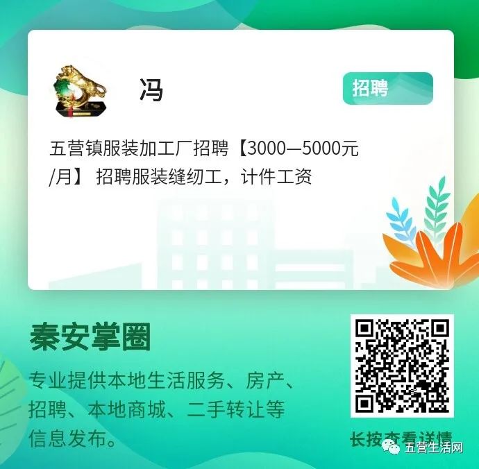 本栏目信息推广会同步至爱秦安、五营生活、陇城生活圈三大公众号