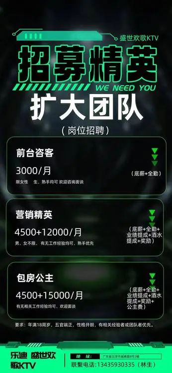 盛世欢歌KTV招募精英 为探寻而生 · 经百般锤炼 全城精英招聘 寻找志同道合之人 加入我们·共创辉煌