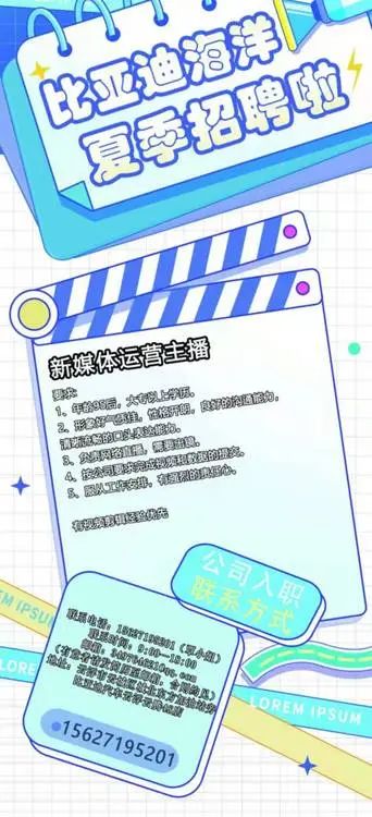比亚迪汽车云浮云腾4s店招聘新媒体运营主播,云城区城北东方加油站旁比亚迪汽车云浮云腾4s店