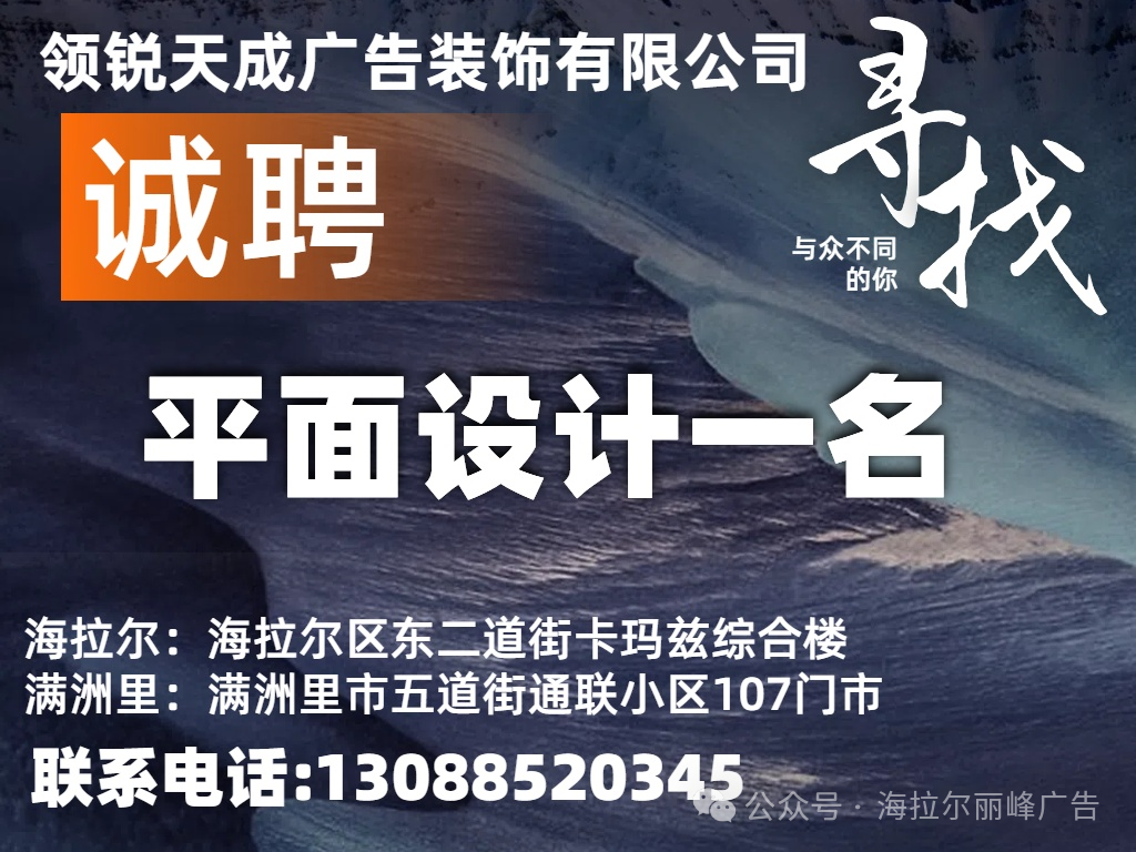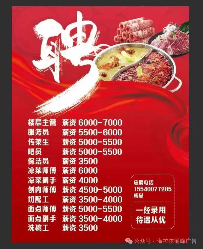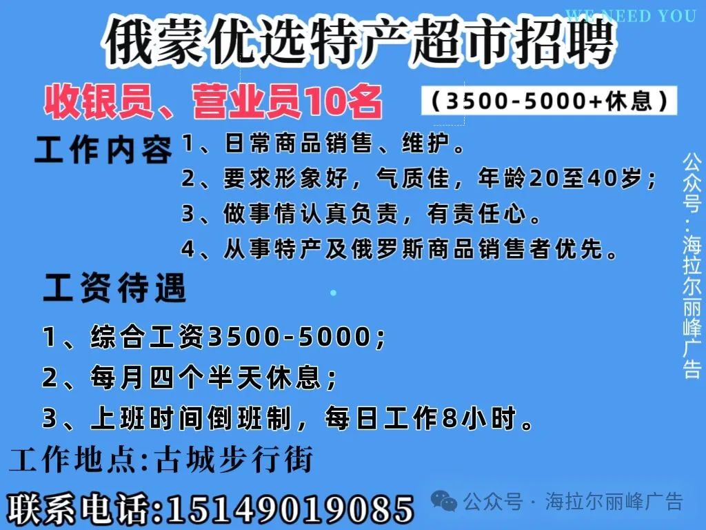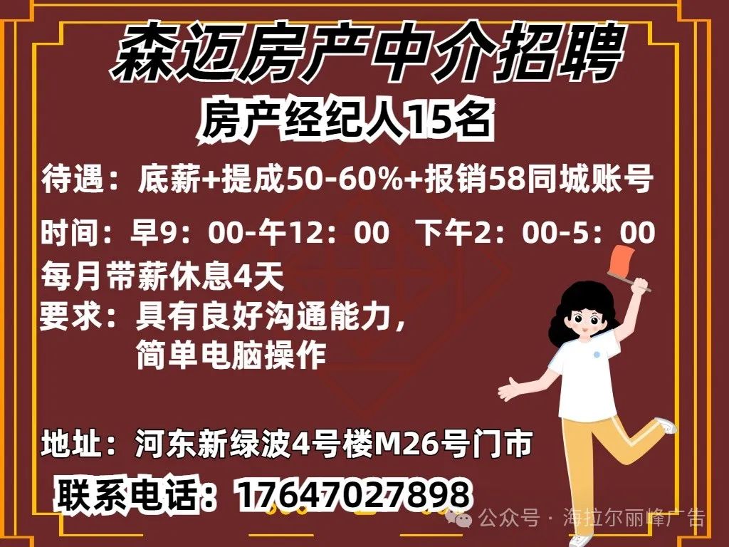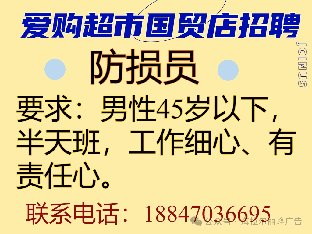 招聘减肥瘦身美体师一名,地址在海拉尔龙凤家园,工作时间相对自由,方便照顾孩子,联系电话15332809444微信同号