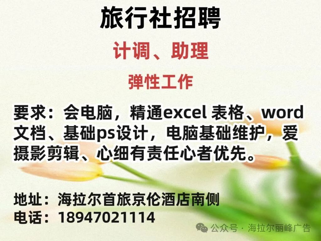 🌺有无经验均可,要有上进心,肯虚心学习。电话/微信17790791993