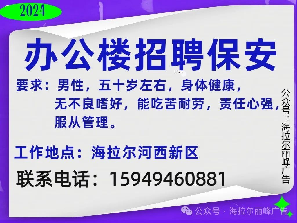 1、保安员:男,身体健康,不超过60周岁,会写字,会用微信。