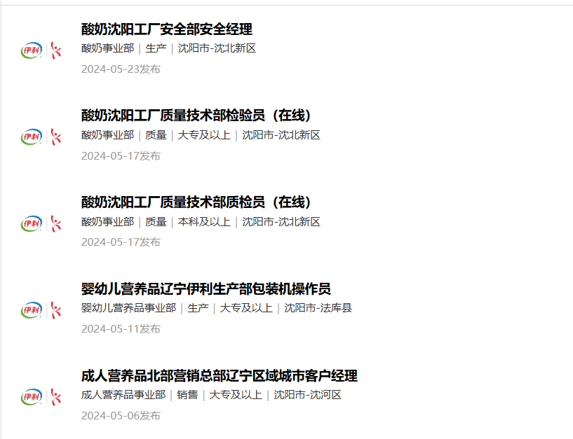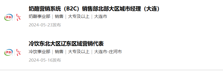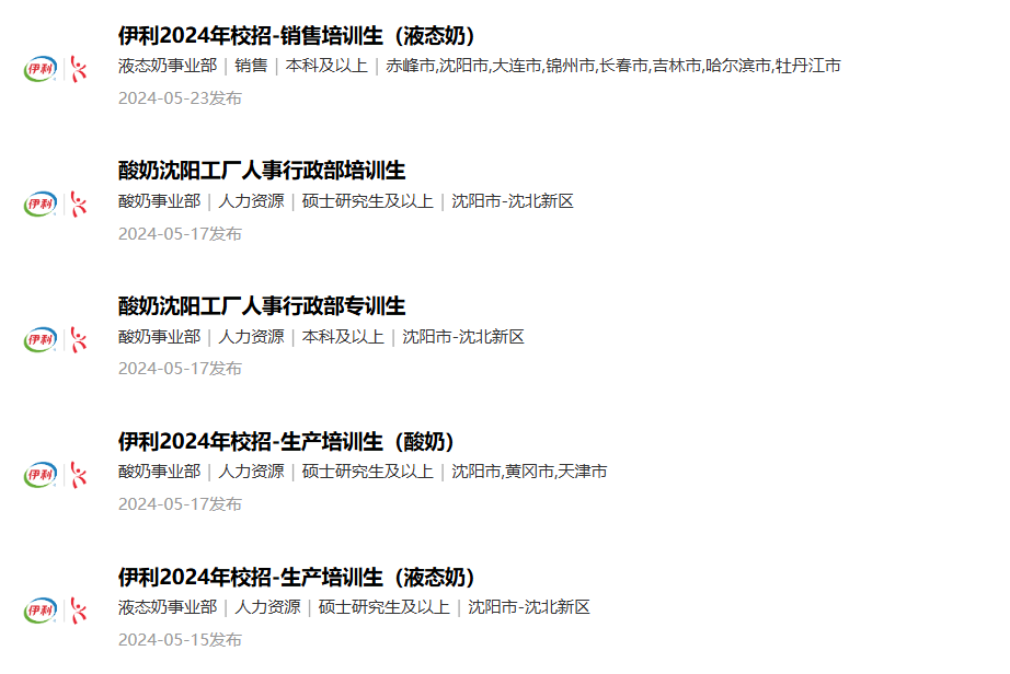 图源:伊利集团招聘官网