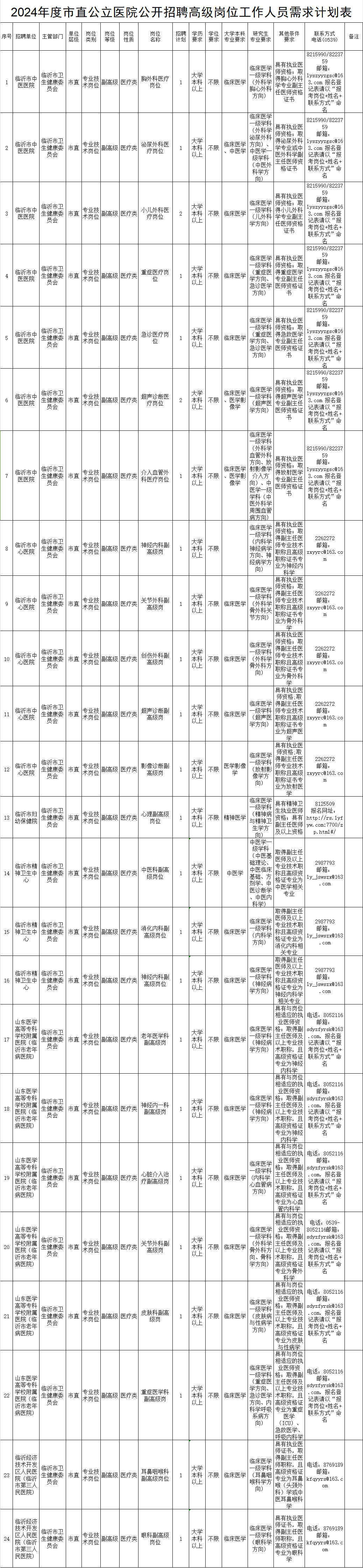 临沂市2024年度市直公立医院公开招聘卫生专业技术高级岗位工作人员简章
