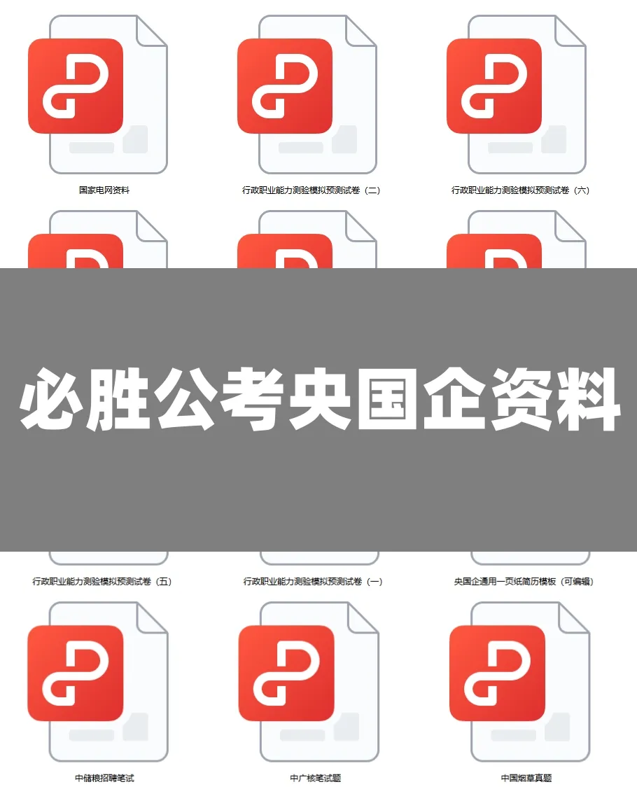 为了助力考生顺利拿下offer,为考生实现人生与职业的双重提升打下良好基础,特为大家准备好了国央企免费资料,央国企通用行测/笔试真题,扫码免费领取
