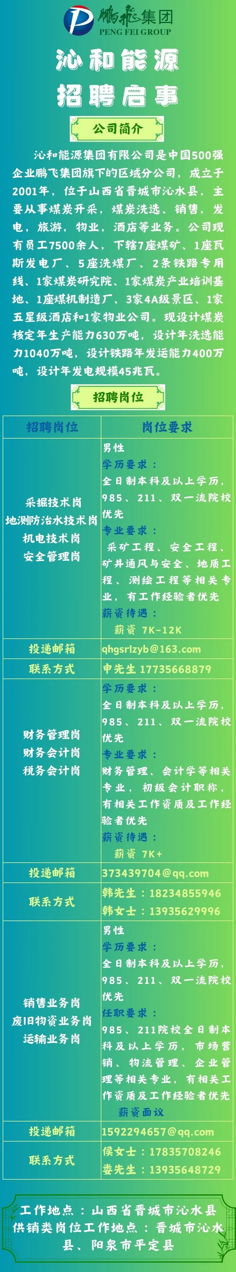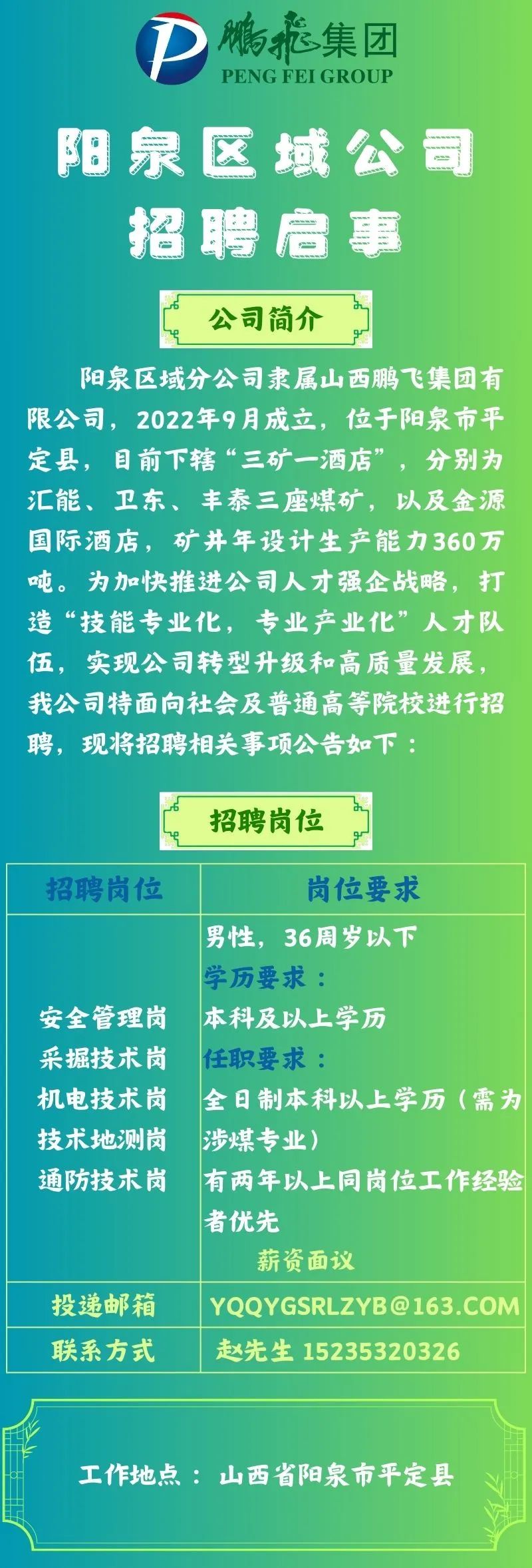 >招聘用工 | 山西鹏飞集团阳泉区域公司