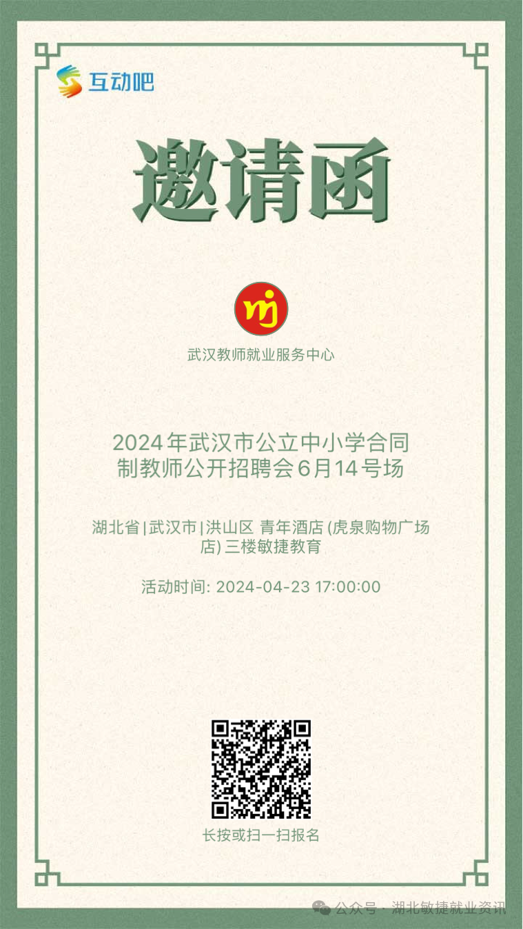 >>>武汉市公立中小学校招合同教师2024年6月14日场: