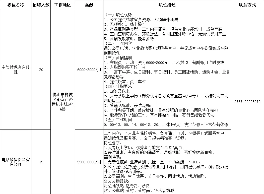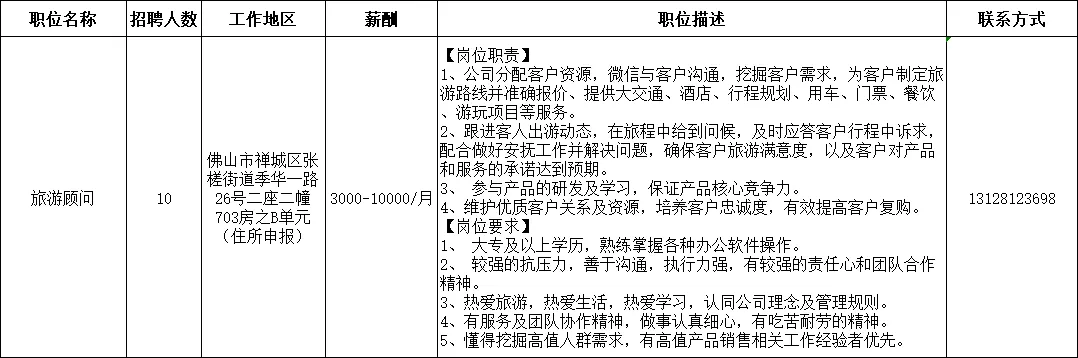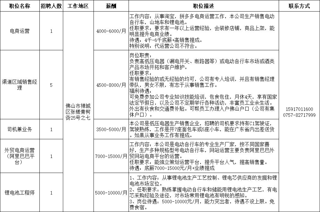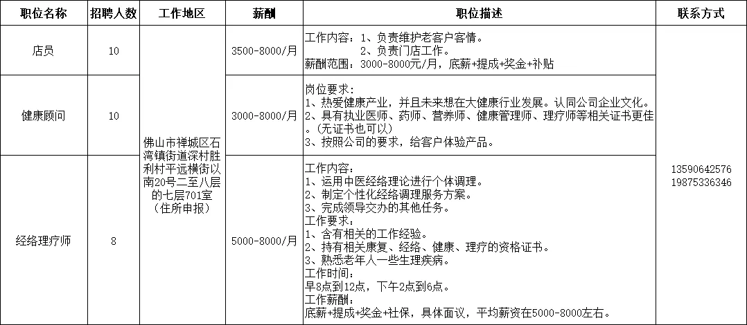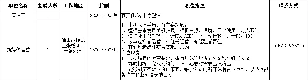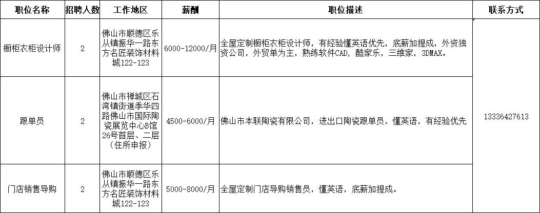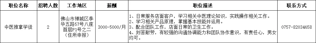 电话咨询时说明:应聘岗位+来源【禅城招聘直通车】微信公众号