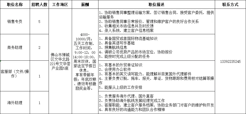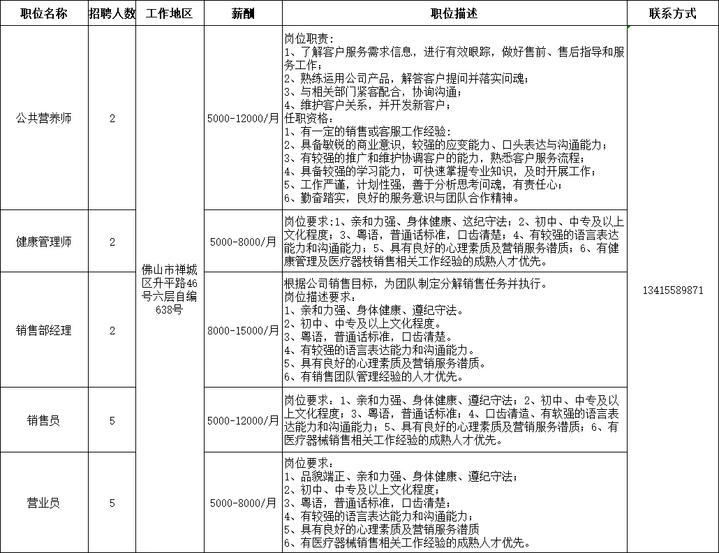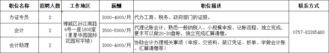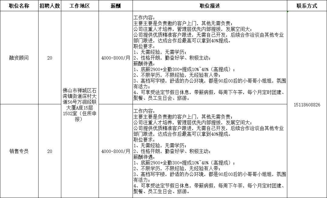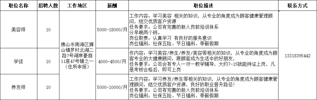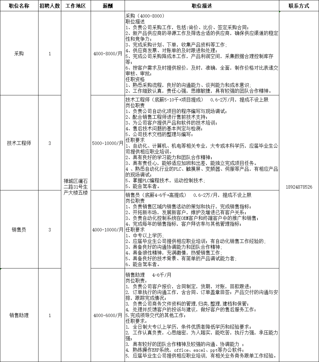 电话咨询时说明:应聘岗位+来源【禅城招聘直通车】微信公众号