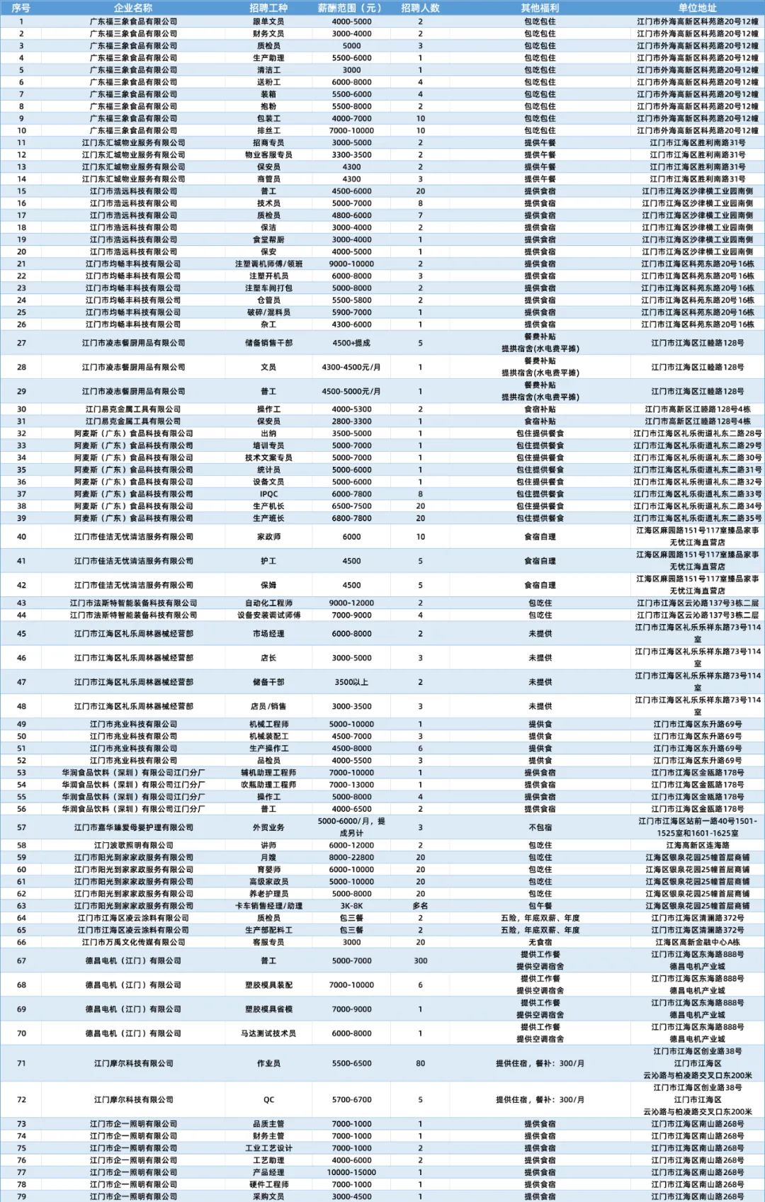 1、求职者请记录相应的招聘编号,如需详细了解,请致电江海区人力资源市场职介服务窗口咨询或直接前往。