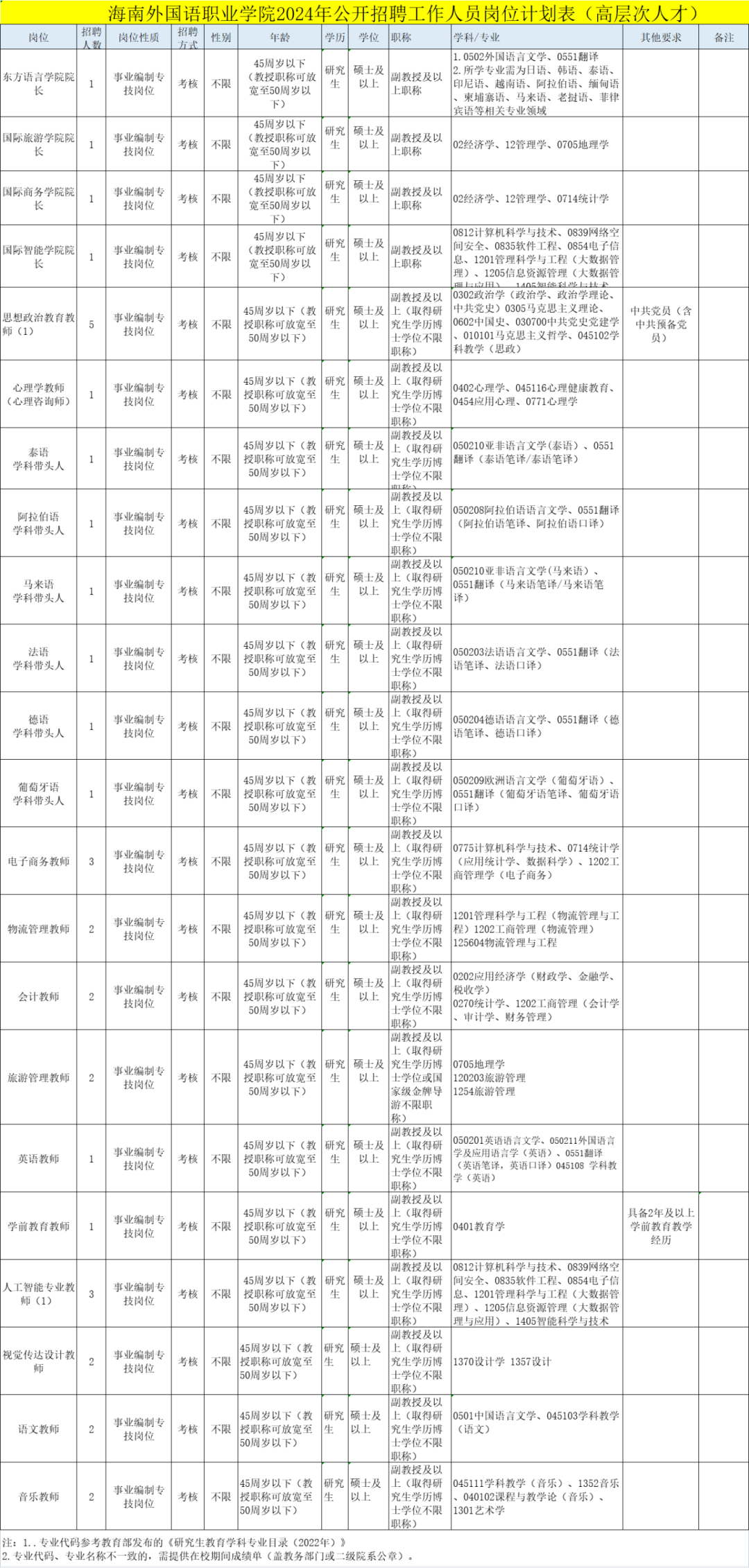 符合岗位所要求其他条件,详见《海南外国语职业学院2024年公开招聘工作人员岗位计划表(高层次人才)》(附件1)。