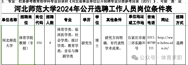 具体要求详见《河北师范大学2024年公开选聘工作人员岗位条件表》(附件1)。其中专业参考教育部《授予博士、硕士学位和培养研究生的学科、专业目录》《普通高等学校本科专业目录》《普通高等学校高职高专专业参考目录(试行)》等设置。