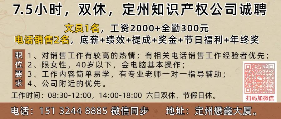 职位要求:年龄18-35周岁,打过电话(最好打过知识产权)。