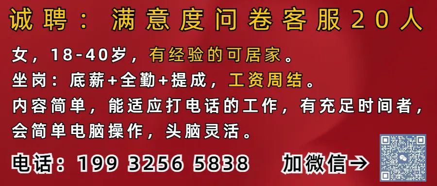 职位要求:年龄22-38周岁之间,活泼开朗,想赚钱,能抗压。