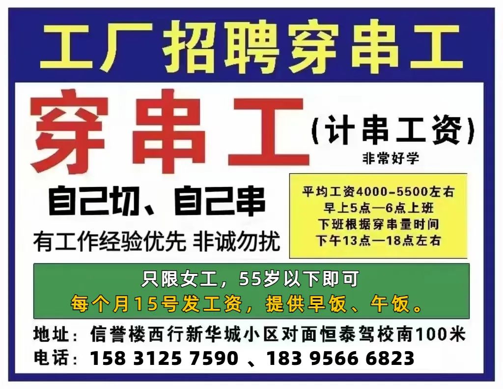 职位要求:20-38周岁,口齿伶俐,勤劳踏实,有无经验均可,工作环境优越,待遇优厚。