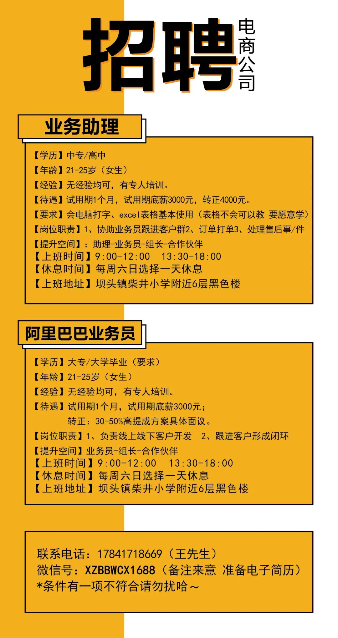 2、必须有耐心,责任心,服从工作安排,有经验优先